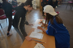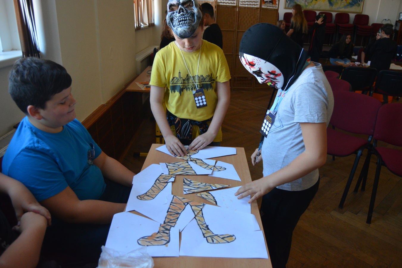 Starší, ale i někteří mladší žáci si pro své spolužáky připravili halloweenské soutěžení v aule školy.