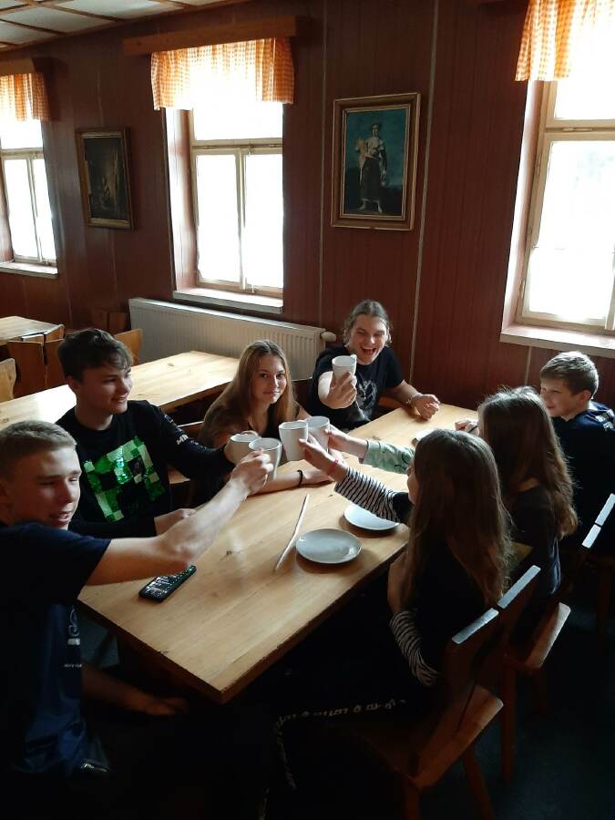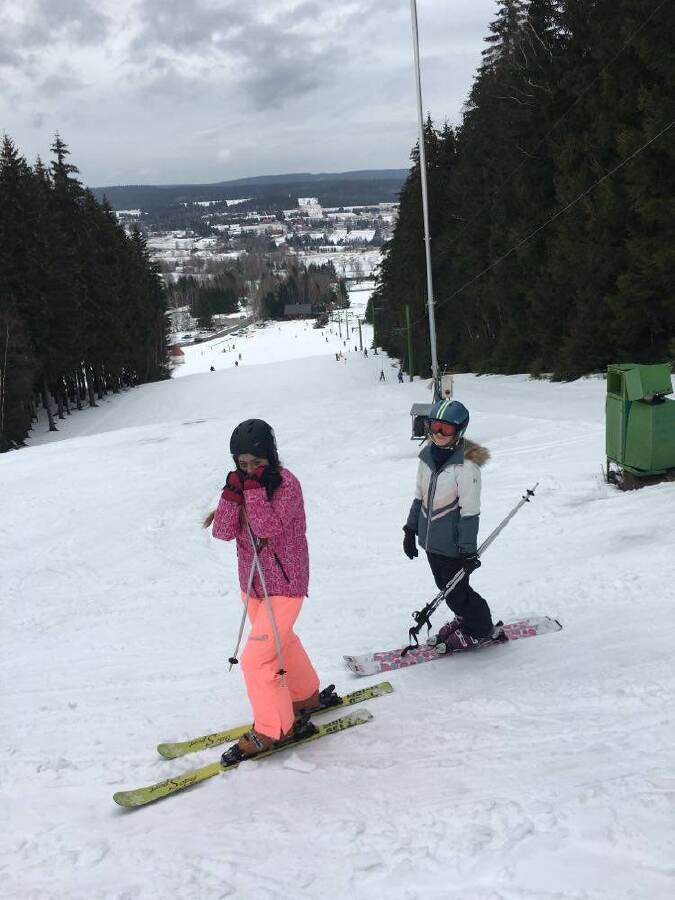 Dopoledne se všichni lyžaři sešli na svahu, s některými podnikli vyučující procházku. Po poledním klidu někteří vyrazili opět na svah, odvážlivci se vydali na běžkách po okolních trasách. Takže...Dřepkins! ![]()