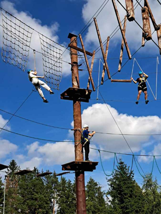 Pro tento kurz jsme si vybrali Sportovní areál Zbraslavice. Někdo by řekl, že tři dny je málo, ale my toho stihli opravdu dost. Zvládli jsme 10km turistiku na Vidlák a na zmrzlinu, sportovní klání ve volejbale, fotbale, basketbale, stolním tenise a badmintonu. Jeden den patřil adrenalinovým aktivitám jako horolezectví, lanovému parku nebo lukostřelbě. Po celou dobu kurzu jsme měli k dispozici obří trampolínu a všude nás vždy doprovázela skvělá muzika. Poslední večer jsme zakončili táborákem.
