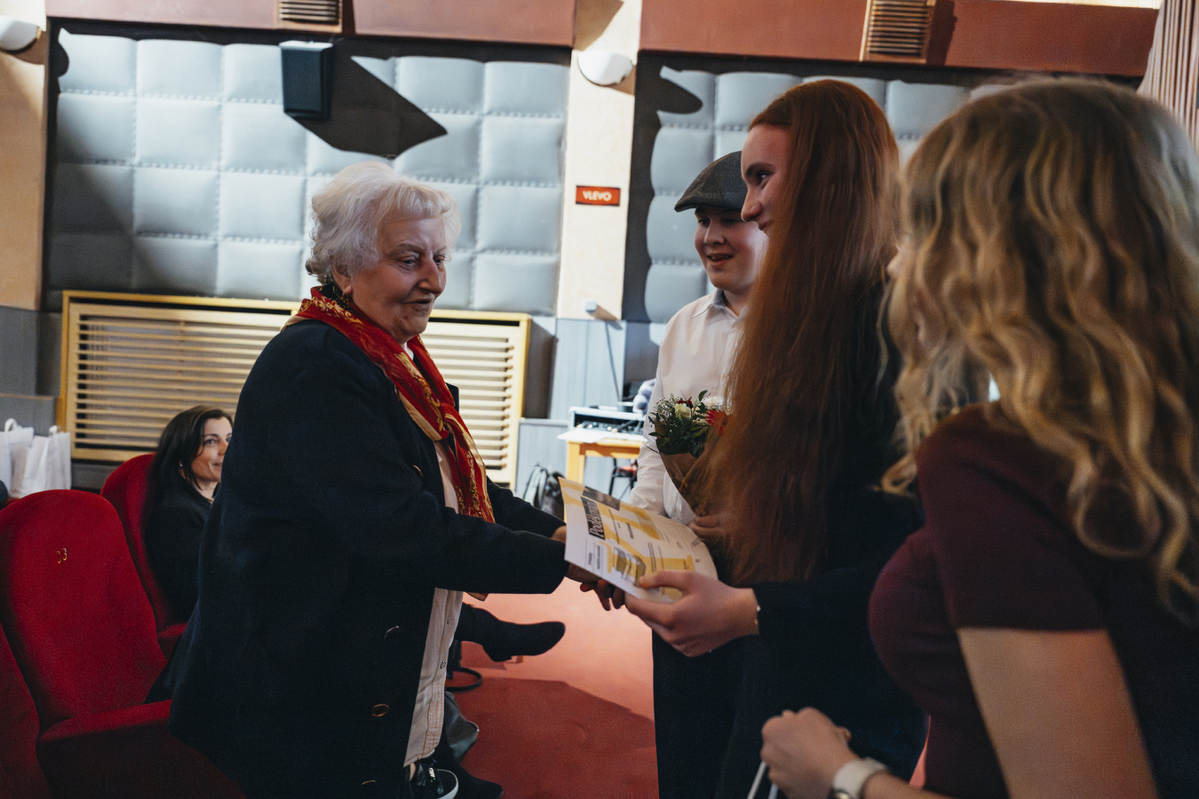 Během uplynulých měsíců žáci dokumentovali životní osudy paní Aleny Kopecké. Výsledkem jejich práce je nejen poutavá videoreportáž, ale také autorská dramatizace, ve které žáci přímo na pódiu ztvárnili jednu z klíčových vzpomínek paní pamětnice. Celý tým zaslouží velkou pochvalu za kreativitu, empatii a odvahu, se kterou se do scénického zpracování pustil.