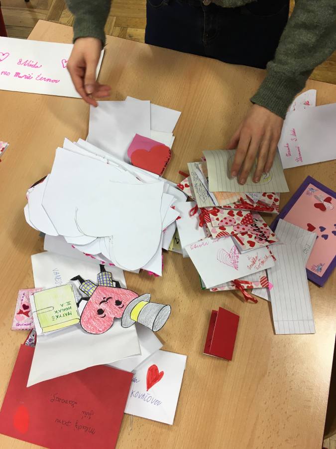 Samozřejmě i naší Kamence se 14.2. slavil Valentýn, a proto od pondělí 10.2. do pátku 14.2. v prvním patře naší školy byla schránka na valentýnská přáníčka. V den zamilovaných naši “poslíčci” přáníčka roztřídili a donesli adresátům.