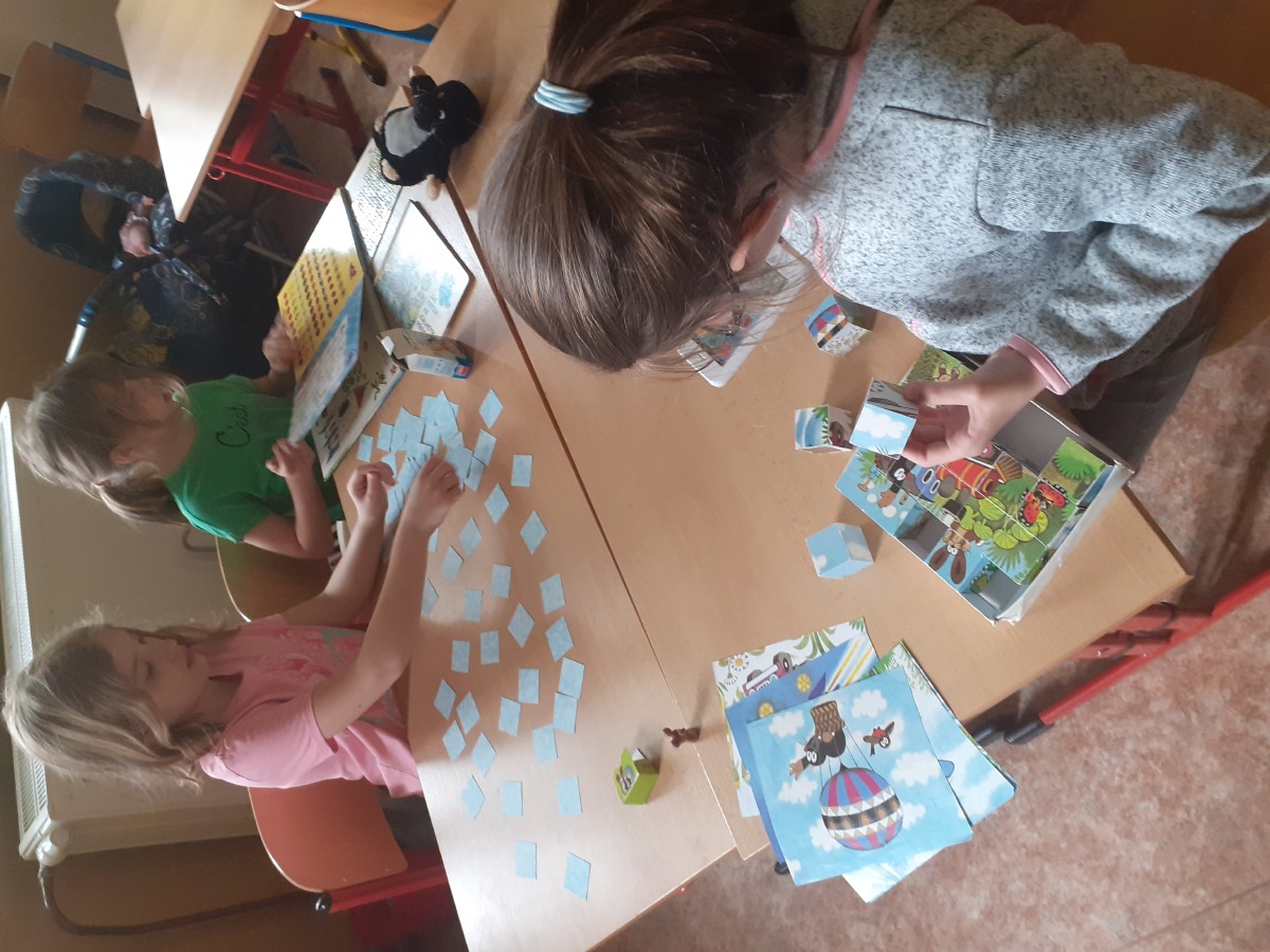 Vše začalo příběhy o krtečkovi a jeho přátelích, pokračovalo to čtením a povídáním si o autorovi krtečka, hledáním správných odpovědí, pokračovali jsme krtkovým dortem, výrobou krtka- stojánku na tužky, bádáním, co se děje v půdě, založením mini zahrádky na okno a tematickými hrami- Krtkovým člověče, nezlob se, hrou Krtek hledá kamarády, hraním her na dětském Krtkově tabletu a mobilu, Krtečkovým lotem, pexesem, kostkami, omalovánkami, skládáním puzzle, hraním kvarteta a hry černého Petra, tiskátky s krtkem, lepením samolepek, knihou aktivit a zakončeno bylo vše soutěží, kdy jsme jako krtci lezli podzemními tunely a hledali jsme poslepu jako krtek poklady a objevovali jsme pohmatem různé předměty.