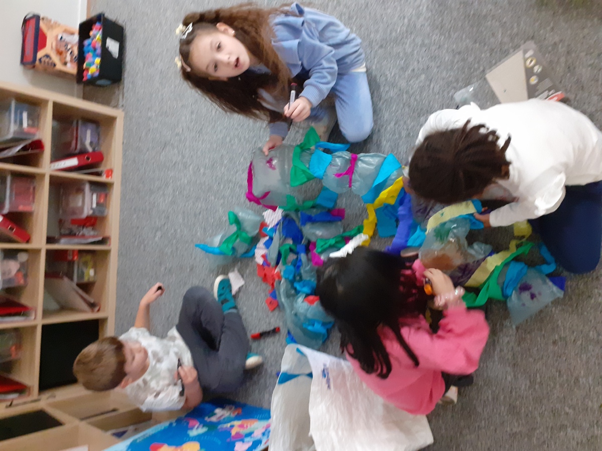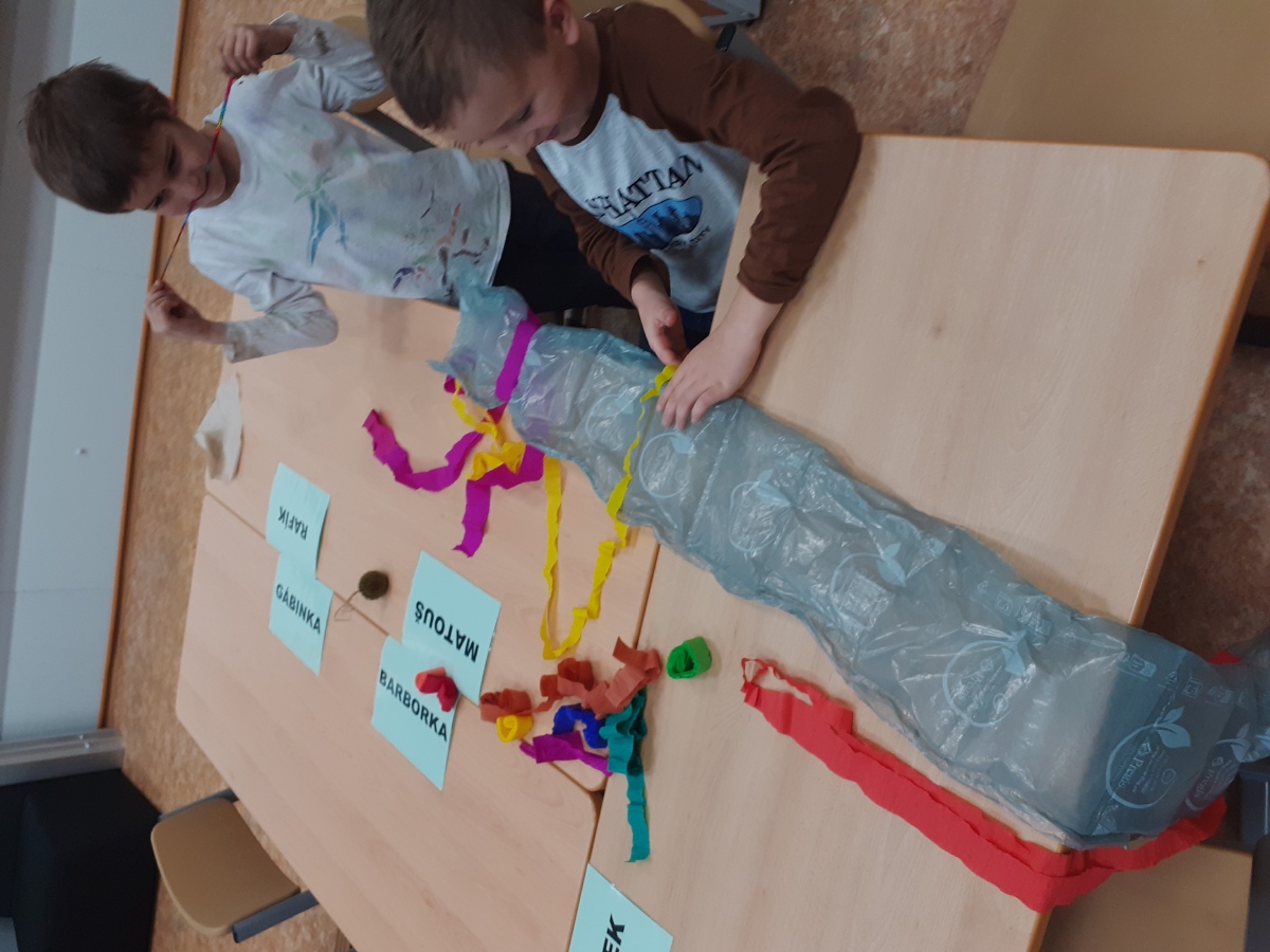 Hned počátkem ledna jsme ve družině nejen přivítaly Tři krále, ale i nové hrací a mazlící přírustky a když udeřily mrazy, mysleli jsme i na zvířátka a zanesli jim něco dobrého na zub- semínka slunečnic, dýní, zrní, suchary, jablíčka aj. dobroty a pak jsme námi vyrobenými draky přivítali i nový čínský rok- rok Ohnivého koně, tančili jsme, hráli jsme si, stavěli, vyráběli,dělali jsme si toasty s nutelou, děláme Celodružinovou hru- nyní Arktidu, Antarktidu (ale z ní fotky až jindy) a karneval....