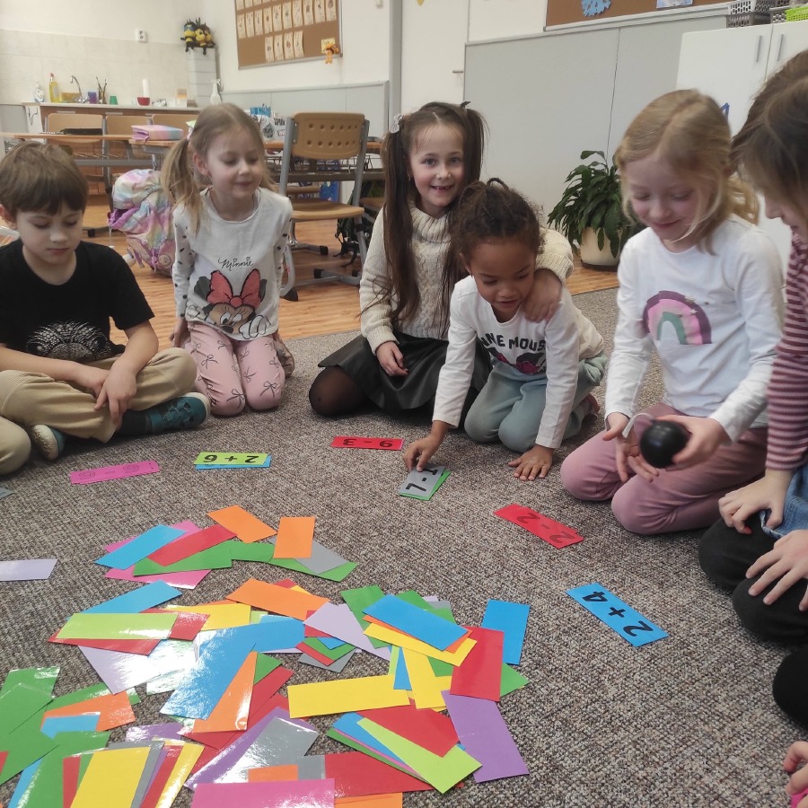 Jak se u nás učíme matematiku? Procházíme různými prostředí: krychlové stavby, vláčky, parkety, krokovací pás, dětské hřiště.
