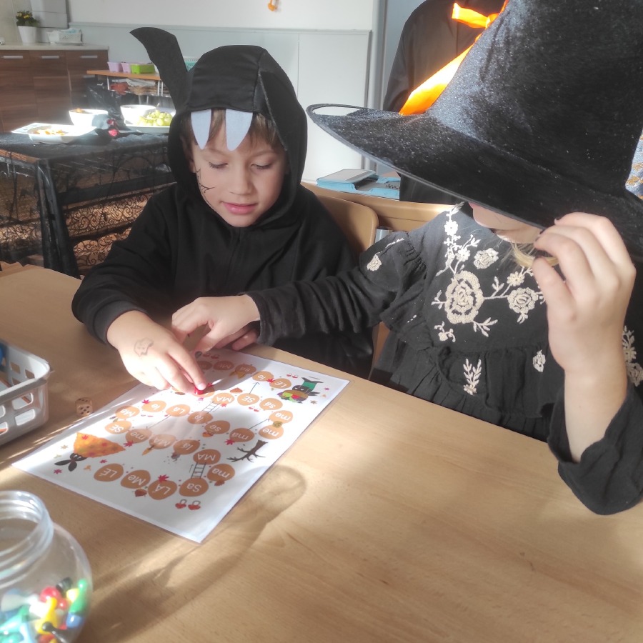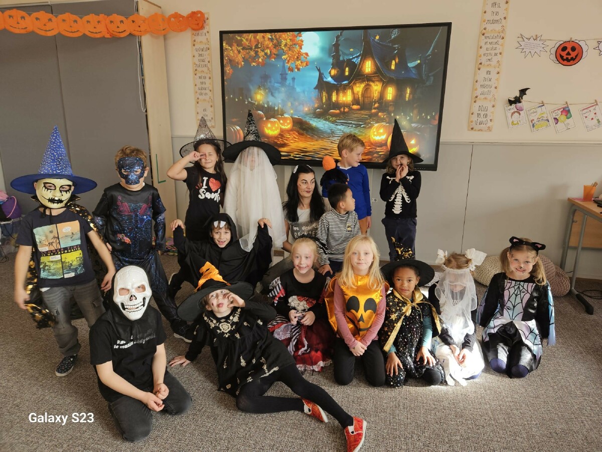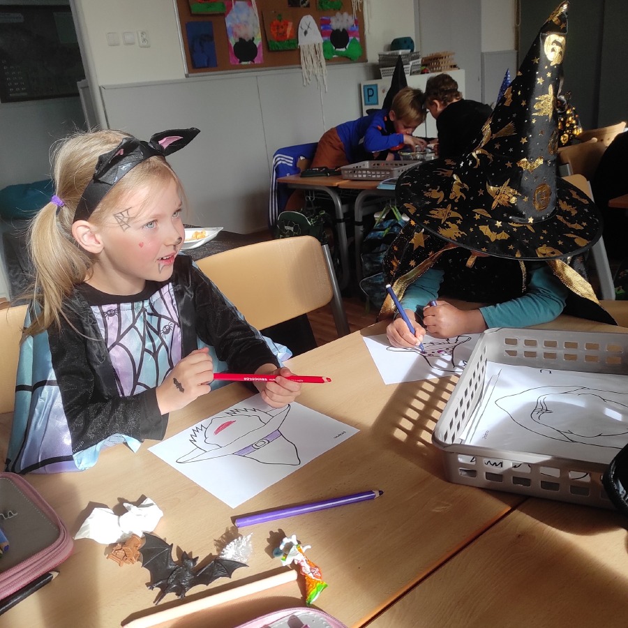 Poslední říjnový den jsme si opravdu užili! Pracovali v minicentrech, kde si děti vyzkoušely různé tvořivé i zábavné úkoly s halloweenskou tematikou – vyráběly duchy, malovaly dýně, luštily strašidelné úkoly a trénovaly spolupráci i trpělivost. Celou školu provázela příjemně napínavá atmosféra.