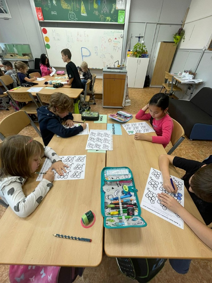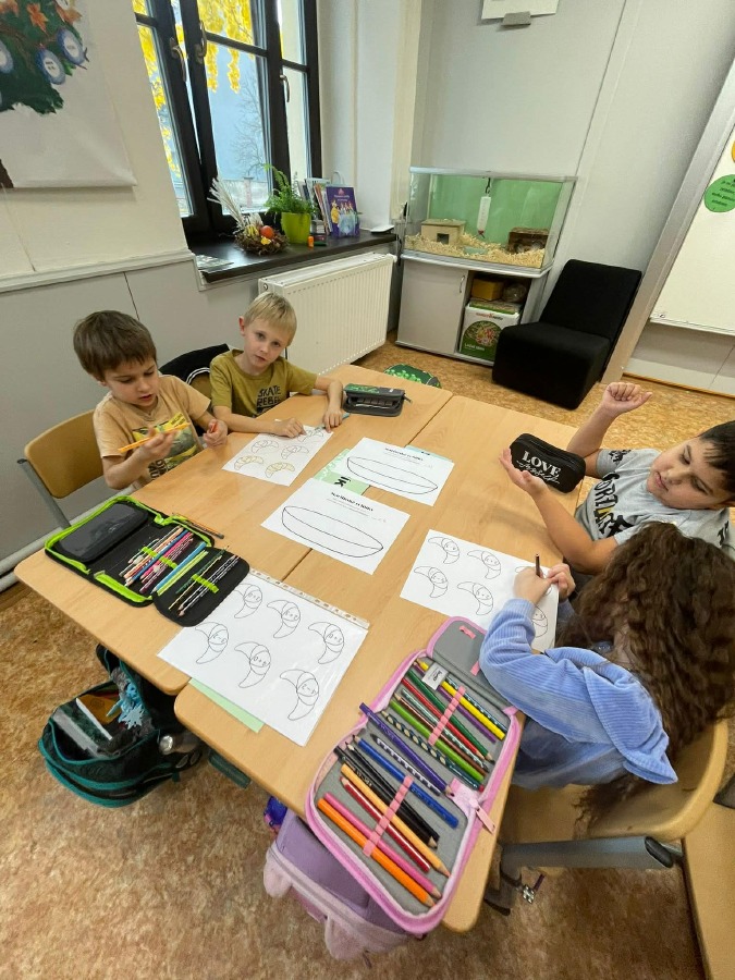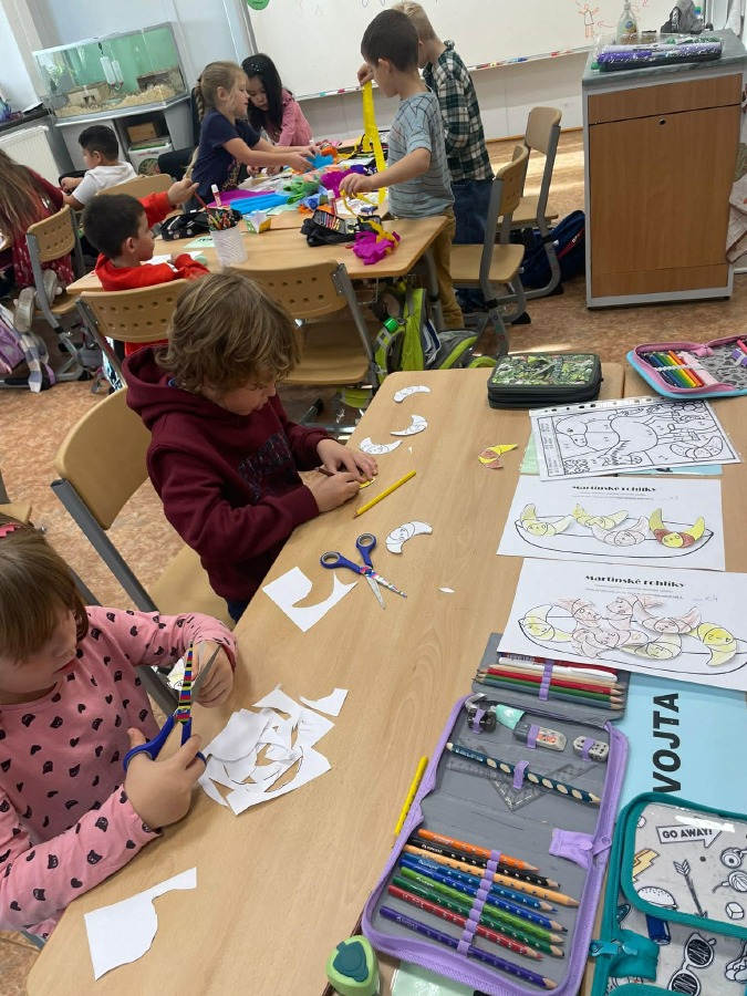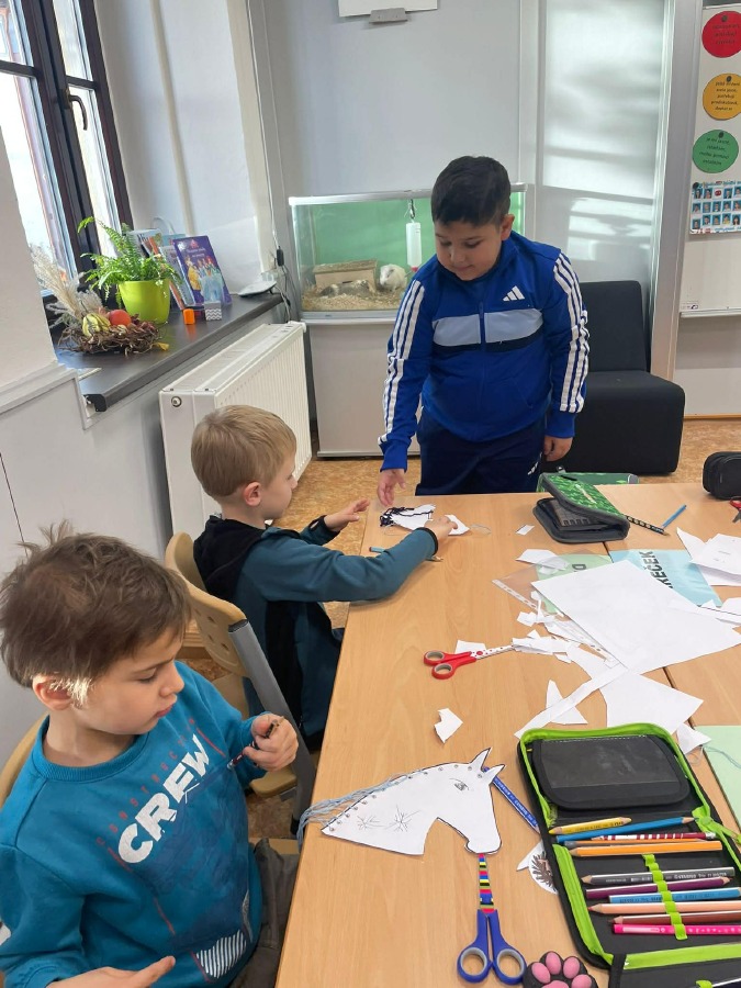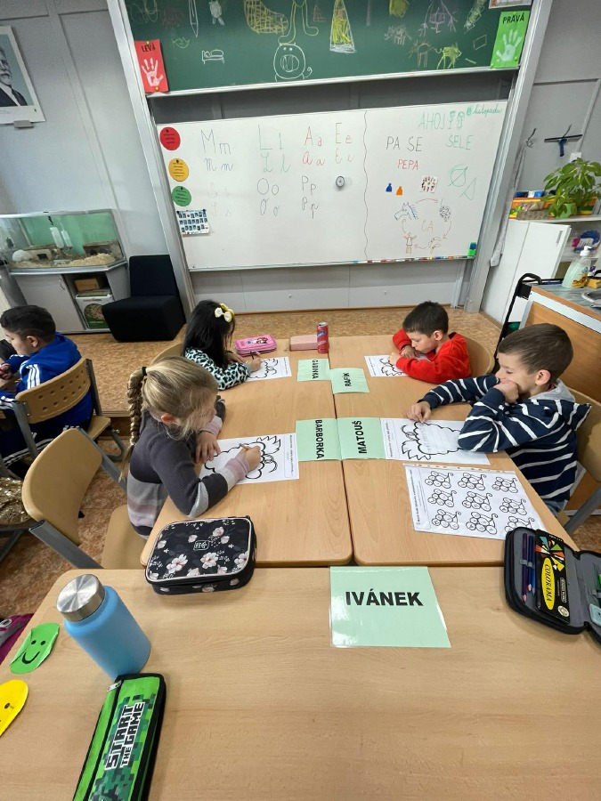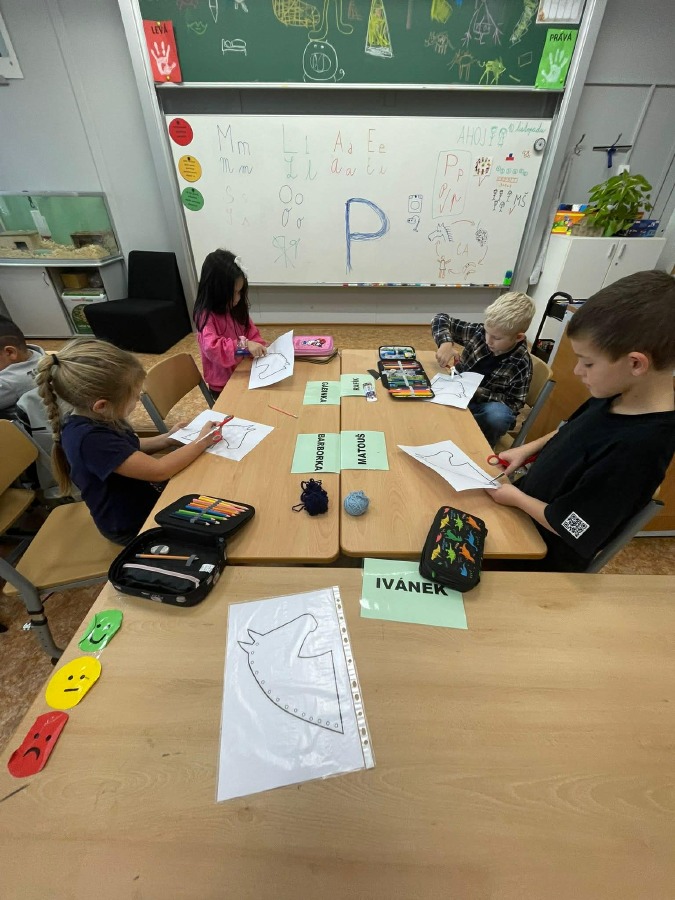 Druhá centra aktivit jsme tentokrát věnovali sv. Martinovi. V českém jazyce jsme trénovali opis písmenek a hledání správných tvarů písmen. V matematice jsme počítali a určovali, zda je výsledek větší než 3 nebo menší než 4. V Ateliéru jsme tvořili výtvory podle předlohy například vytráž a v Dovednostech jsme si vyrobili koně svatého Martina. ![]()