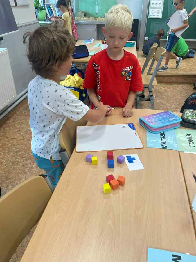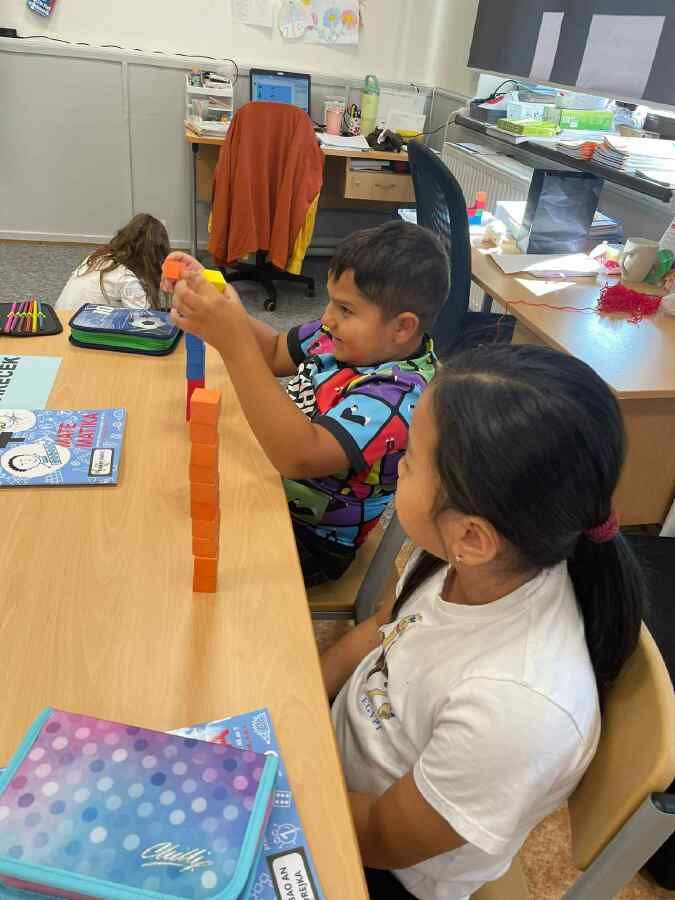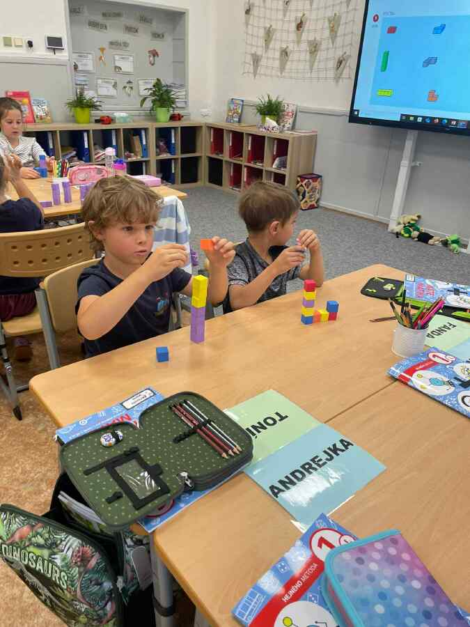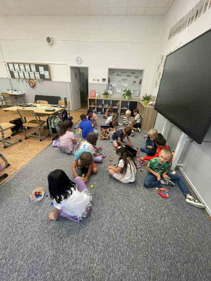 První školní měsíc jsme strávili poznáváním nového prostředí – nejen ve třídě, ale i v okolí školy. Vyzkoušeli jsme první práci ve dvojicích, pracovat s Ipady, objevili radost z tvoření a při přestávkách jsme zjistili, že dokážeme postavit komíny vyšší než my sami. Září bylo plné objevování, her a prvních společných zážitků.![]()