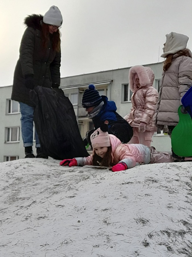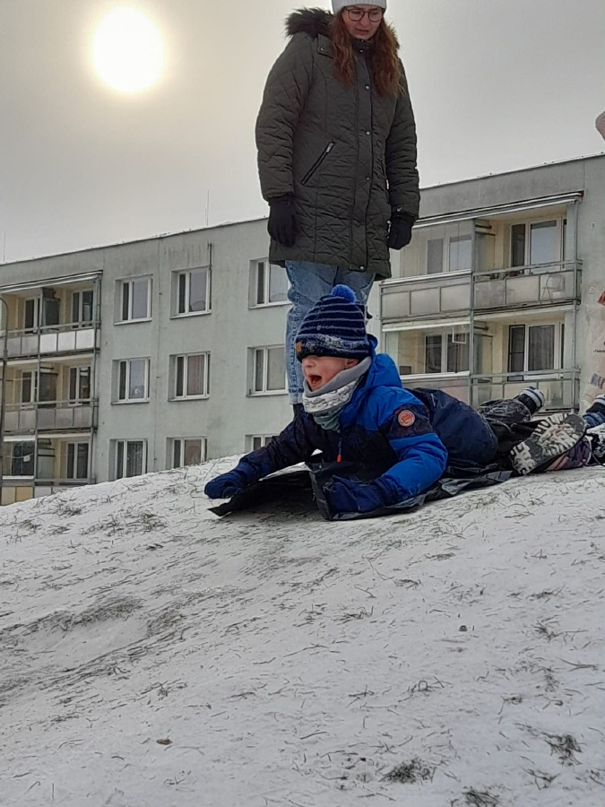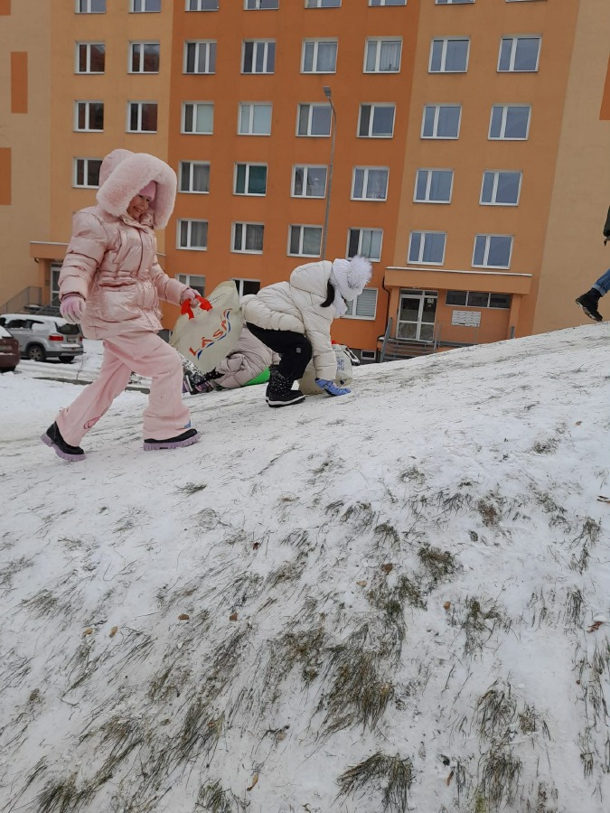 Napadl sníh a my si ho chtěli užít, ale musíme se přece učit. Dá se to spojit v jedno? Jasně, že dá! Měli jsme teplé oblečení, teplý čaj, něco na bobování a vyrazili jsme. Cestou jsme trénovali slabiky a písmenka. Hledali jsme věci, které začínají na daná písmenka/slabiky. Psali jsme do sněhu a počítali jsme příklady. Potom jsme mohli vyrazit na kopec. Sjela ho i paní učitelka. I při bobování jsme se vlastně učili - domlouváme se, nasloucháme instrukcím, učíme se ohleduplnosti a pomoci druhým, chováme se zodpovědně, přizpůsobujeme své chování k podmínkám. Nešťastnou náhodou se rozbil pekáč, který nám půjčila paní družinářka. Koupili jsme proto nový a dali jsme ji ho. ![]()