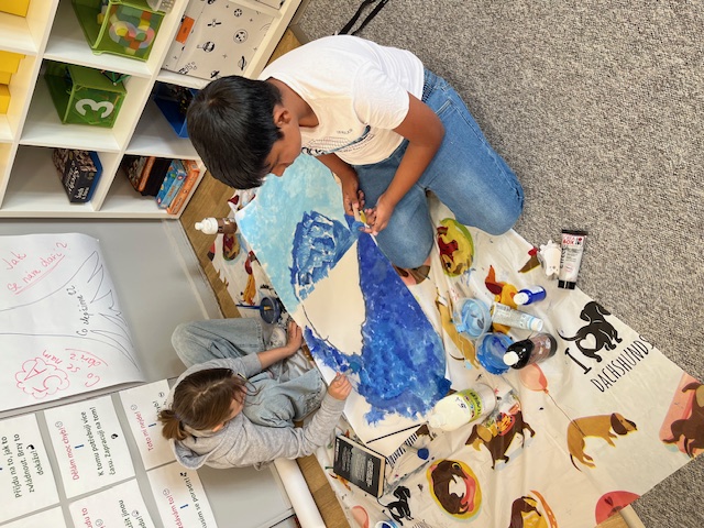 V centru Ateliér děti společně vytvořily nádherné velké plakáty s ledovci a dle fantazie dokreslovaly tučňáky, velryby a potopené lodě. Zjistily si, jakou část má ledovec pod vodou a nad vodou. Zde mají všechny děti obrovské ocenění, moc se jim to povedlo.