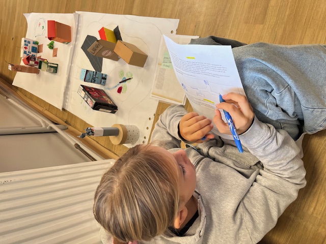 V angličtině spojené s pracovními činnostmi děti tvořily své vysněné město (budovy vyráběly z krabiček od čajů), vytvořily své město a anglicky dneska popisovaly své budovy, vedle čeho se nacházejí, jak vypadají, co ve městě vidíme.... Samy zjistily, že prezentace před ostatními v anglickém jazyce není vůbec jednoduchá a vyžaduje i respekt od ostatních.