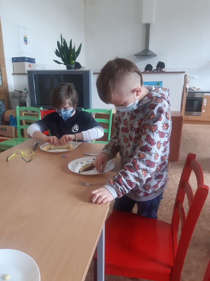 Dnešní den zakončili čtvrťáci návštěvou kuchyňky, na kterou se dlouho těšili. "Už umíme připravit těsto na palačinky! ", říká Ondra. "A není to nic těžkého".