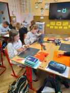 Potom přišel den D a ve třídě nebyla už jen strašidelná okna. V kostýmu přišli všichni a dokonce nechyběla ani originální přepravka na učení. Spolužáci ze žákovské školní rady si připravili super program v aule, kam jsme také zamířili. Nechyběl ani kostým paní učitelky a paní asistentky. Takové strašidelné učení nás bavilo.