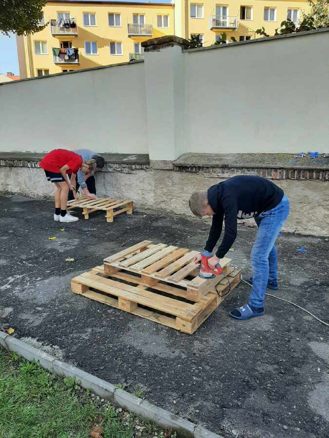 Deváťáci si za pomoci rodičů vyrobili vlastní posezení do třídy.