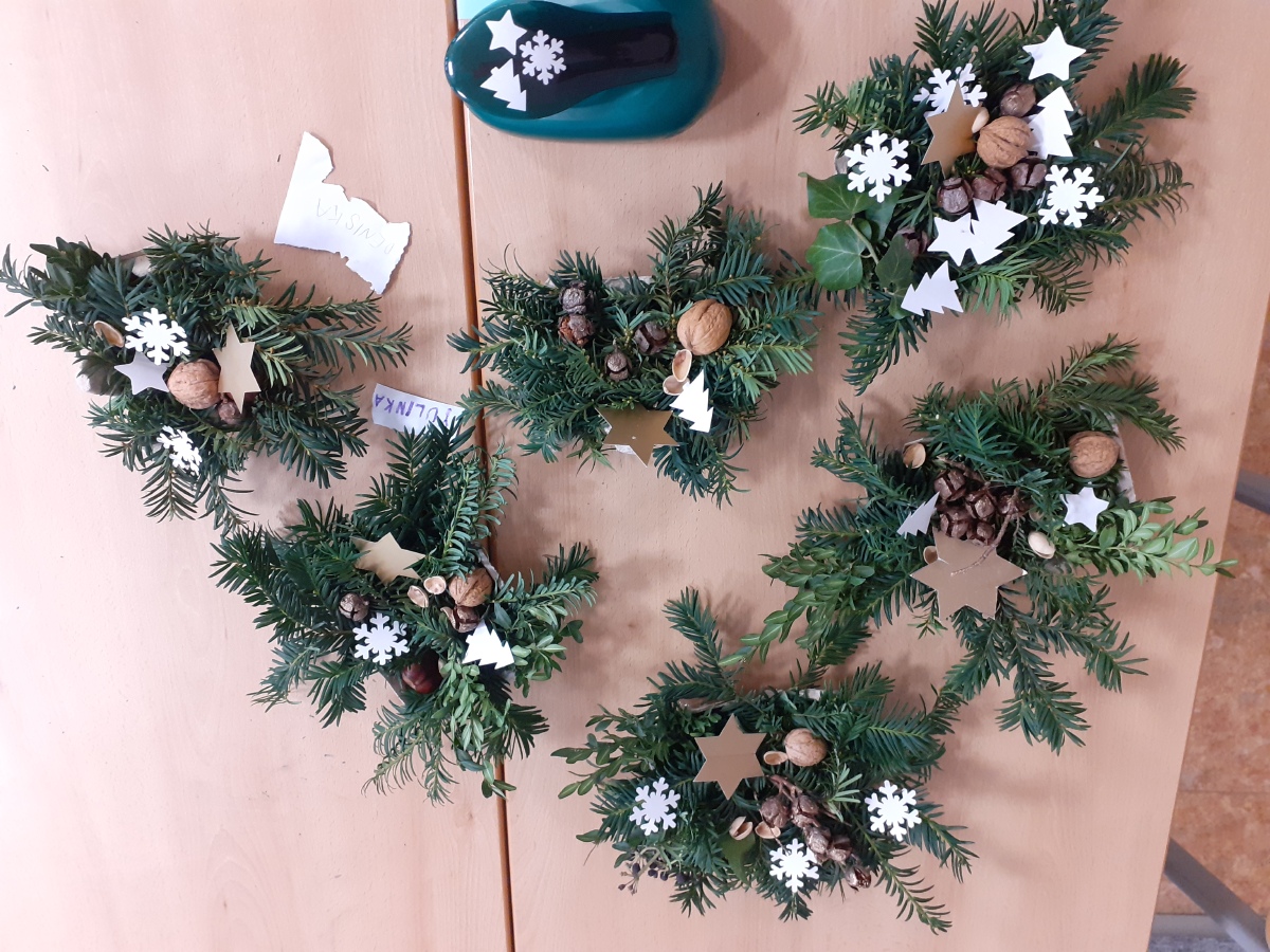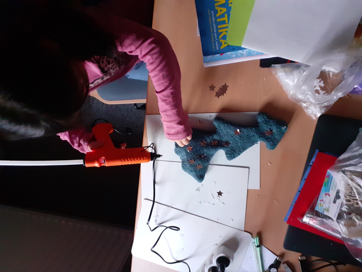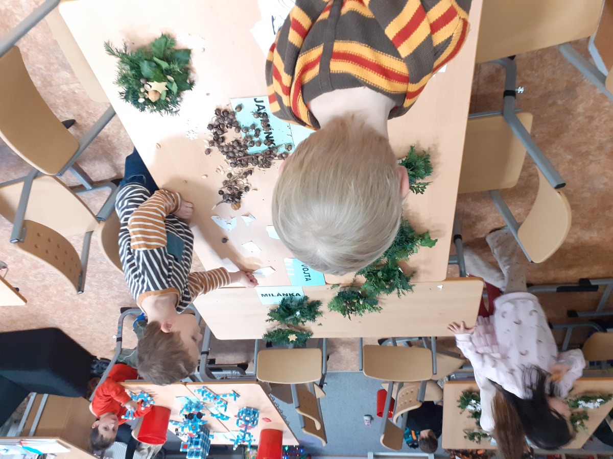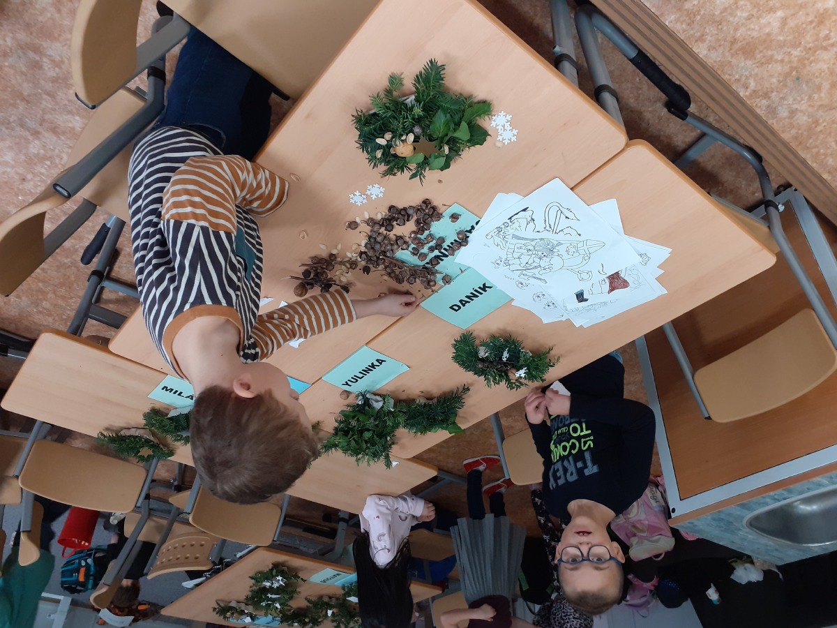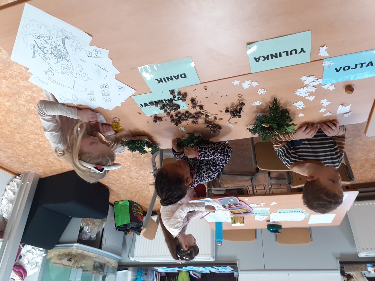 Tvoříme na adventní jarmark, užíváme si prvního sněhu, zpíváme koledy, hrajeme si, oslavujeme Mikuláše, tvoříme si vánoční dekorace domů, pečeme cukroví a pak konečně rozbalujeme dárky, jíme vlastní upečené cukroví, zpíváme koledy….