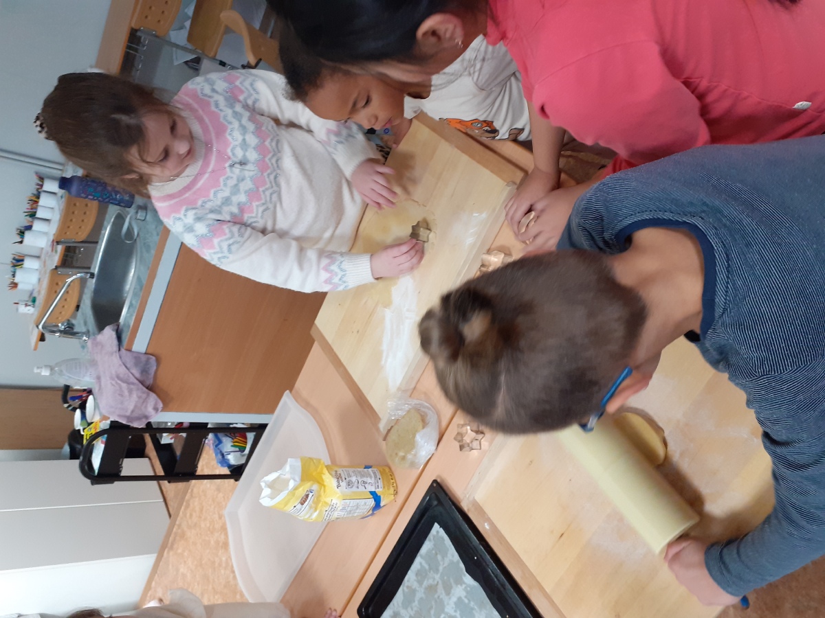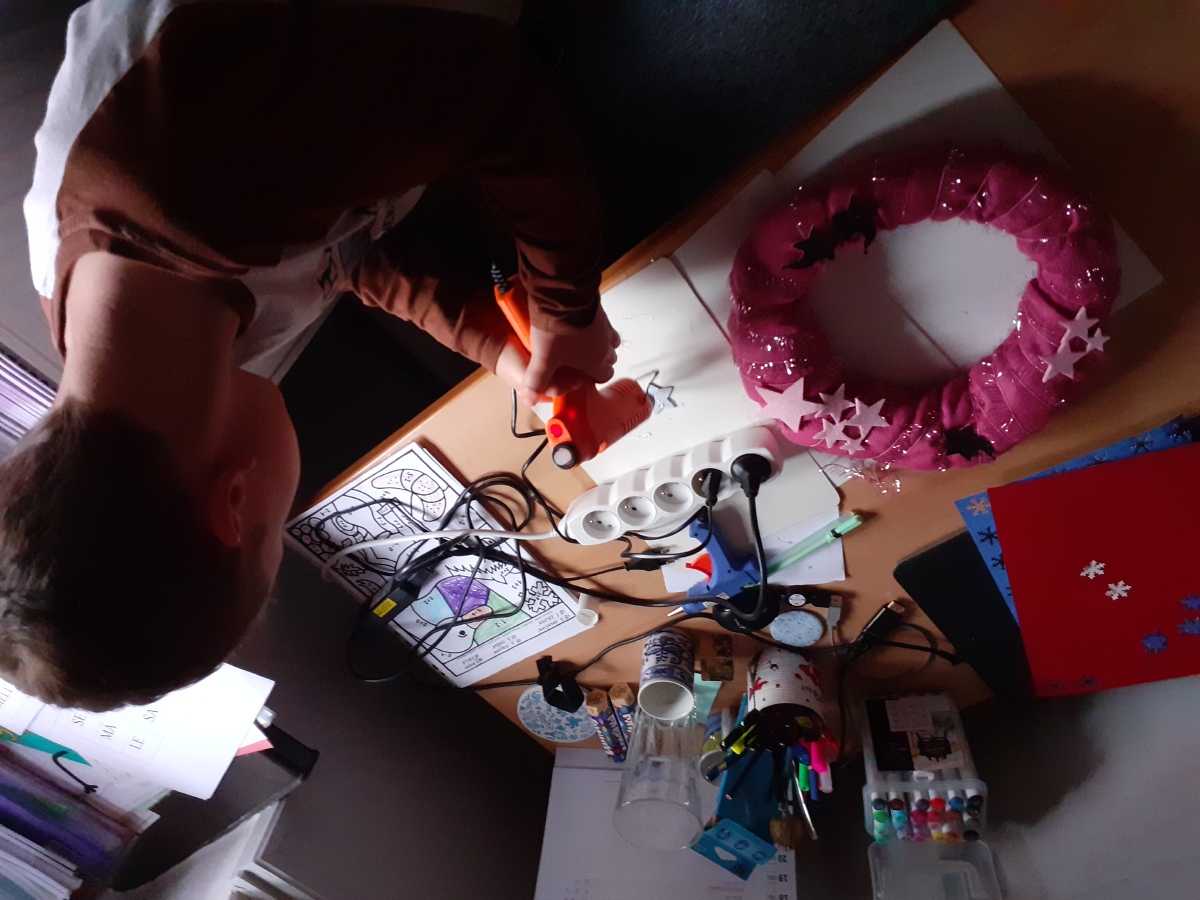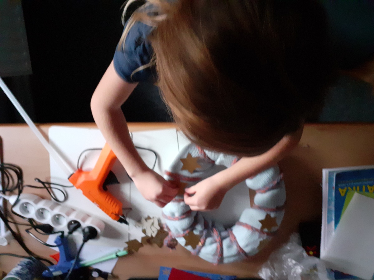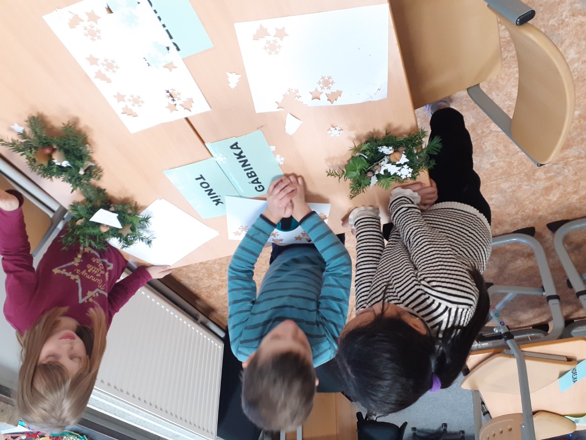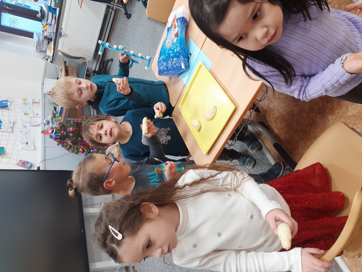 Tvoříme na adventní jarmark, užíváme si prvního sněhu, zpíváme koledy, hrajeme si, oslavujeme Mikuláše, tvoříme si vánoční dekorace domů, pečeme cukroví a pak konečně rozbalujeme dárky, jíme vlastní upečené cukroví, zpíváme koledy….