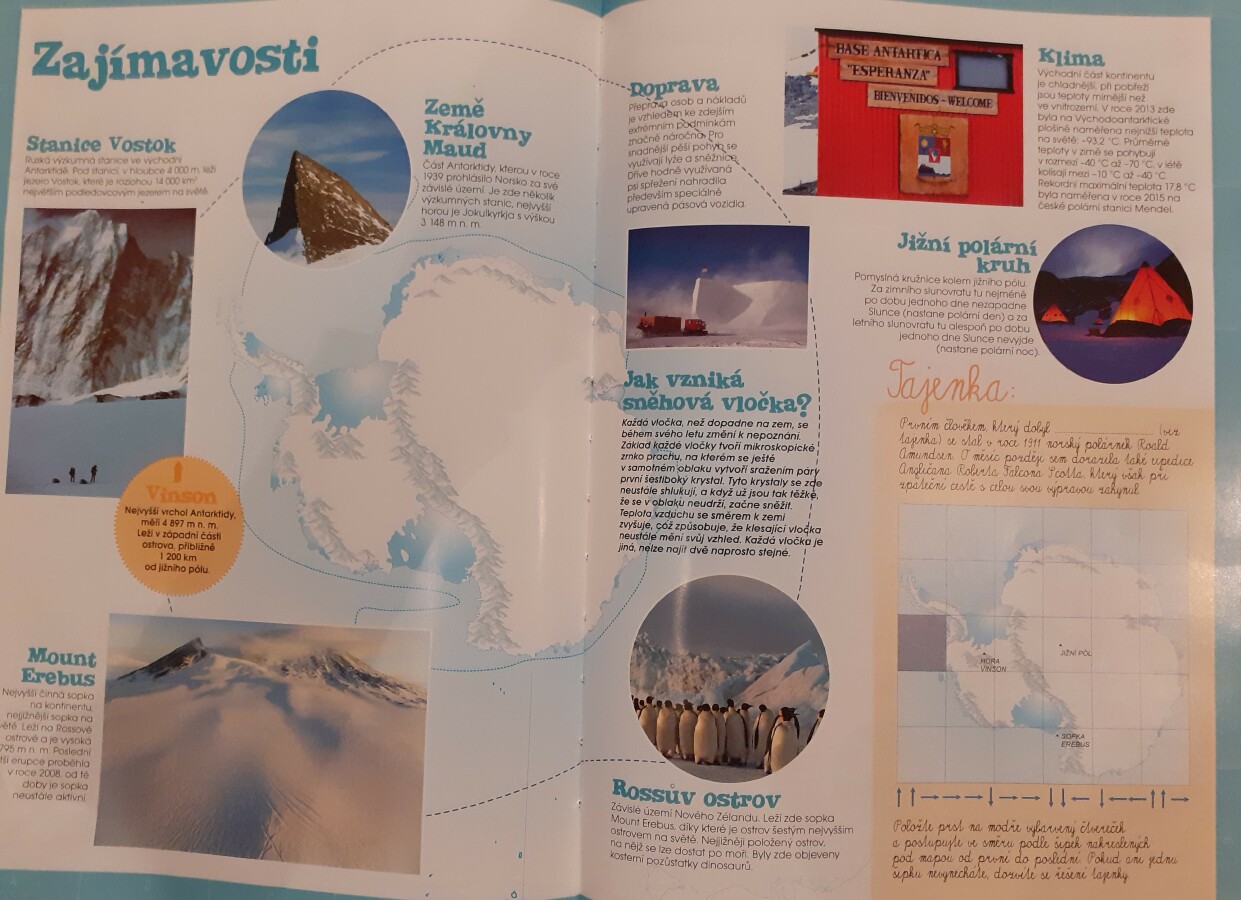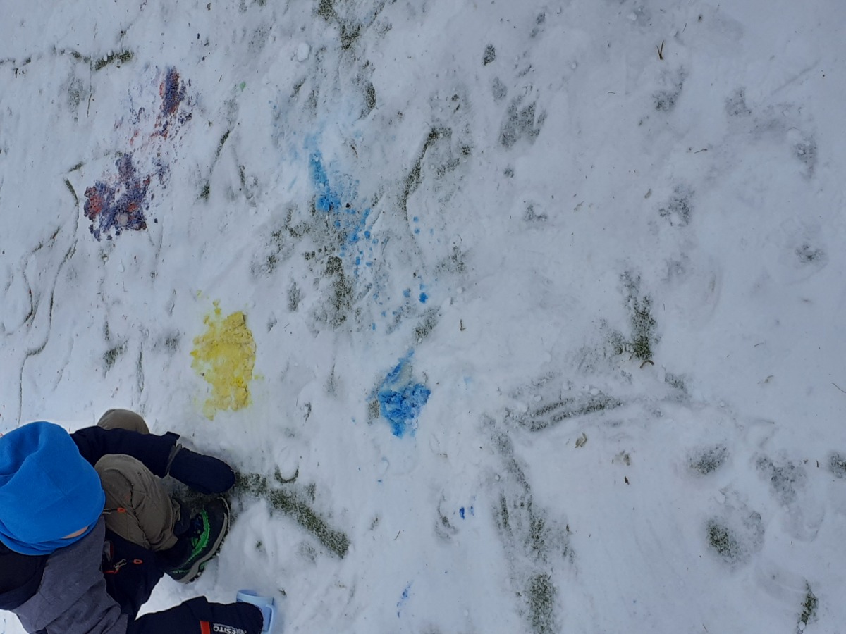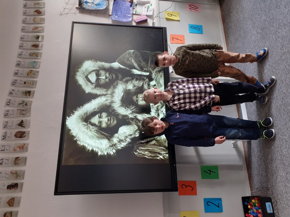 Zimní období ledna a února jsme si povídali o Antarktidě a Arktidě- co zde žije, roste, kdo tu žije (výzkumníci, eskymáci…), jaká je zde příroda, teploty v zimě a v létě, zajímavosti, jak vznikají, tají a pohybují se ledovce, jak vzniká polární záře, co je v polární stanici, jak vzniká sníh a led, proč sněží, zabývali jsme se stavbou sněhových vloček, které jsme i chytali na dlaň a pozorovali, protože toto téma jsme si užili letos plnými doušky i na vlastní kůži- letošní zima nám nabídla dostatek sněhu i ledu, stavěli jsme sněhuláky, mini iglú, sněhové domečky, dělali jsme pokusy se sněhem a ledem- vyráběli jsme ledové diamanty- čiré i barevné, vyrobili jsme improvizovanou ledovou kru a barvili jsme led a sníh, stopovali jsme ve sněhu, vyrobili jsme si díky mrazu přes noc zamrzlou polární krajinu, hráli jsme si na sněhu a ledu, vyráběli a kreslili/malovali jsme sněhové vločky a zimní obrázky, stříhali jsme papírové sněhové vločky, vyráběli tučňáky, plnili jsme různé úkoly k tématu- labyrinty, dokreslovačky, rébusy, počítali jsme polární zvířata, tučňáky aj., hádali jsme stopy zvěře ve sněhu, četli jsme si příběhy i o polárních tažních psech, pouštěli jsme si dokumentární filmy k tématu, zpívali jsme Grónskou písničku od J. Nohavici i Antarktidu od Pokáče, společně jsme vyrobili 3D polární krajinu- dívky chodící na šití přišili lednímu medvědovi uši, vyrobili/ušili jsme eskymáky, iglú…, hráli jsme hru tučňák Pingo, pracovali jsme s chytrou tužkou… ….