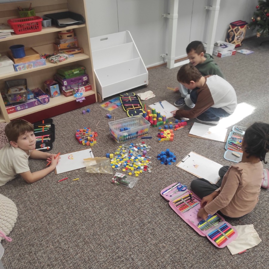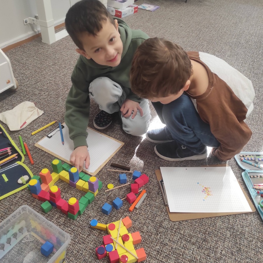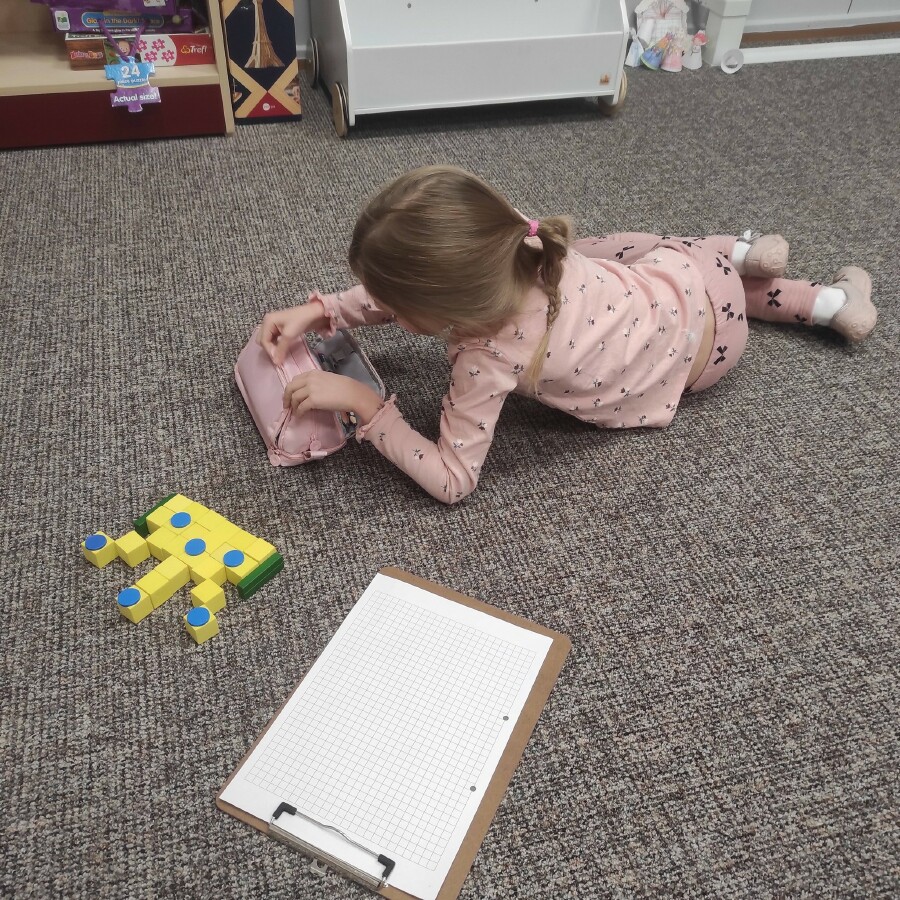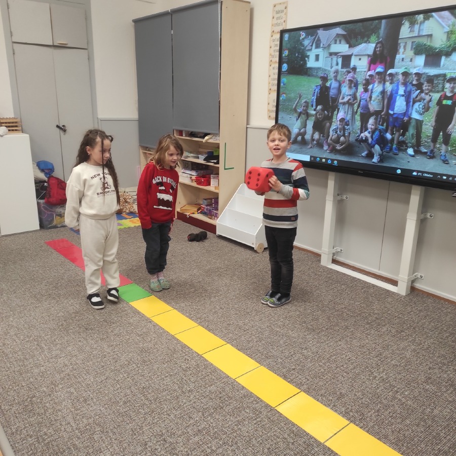 Jak se u nás učíme matematiku? Procházíme různými prostředí: krychlové stavby, vláčky, parkety, krokovací pás, dětské hřiště.