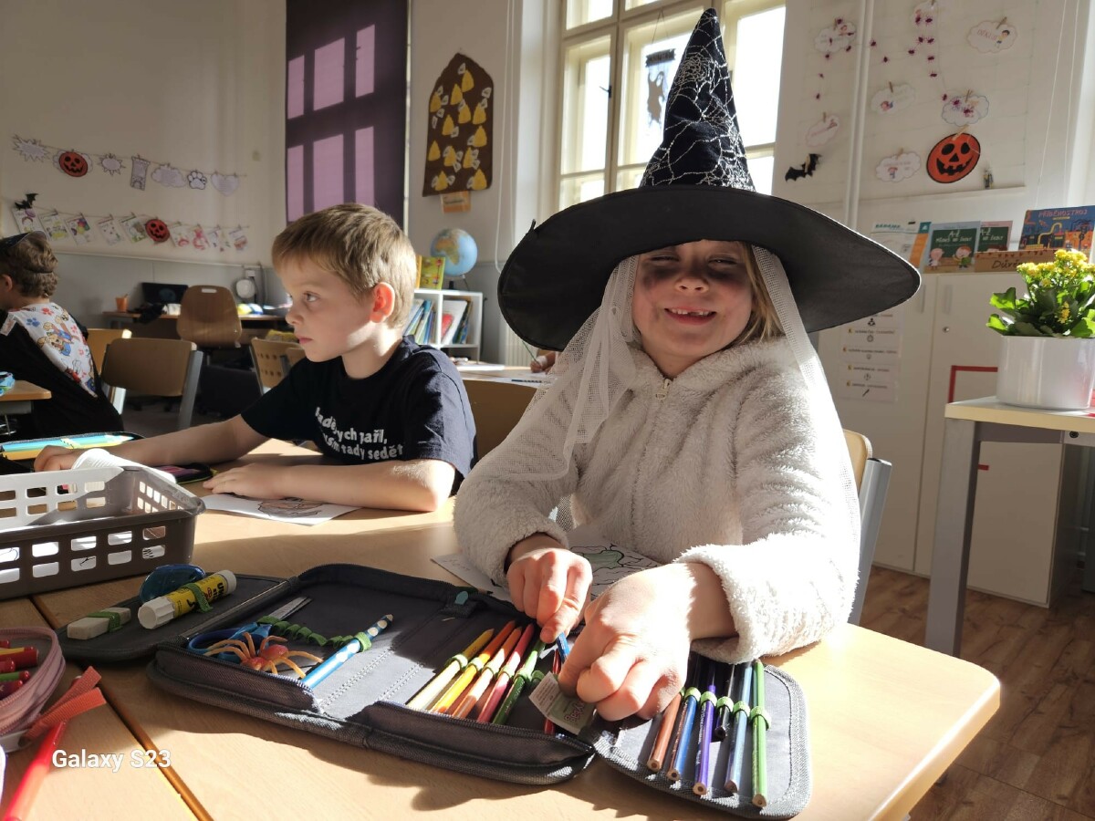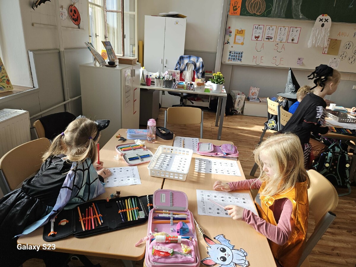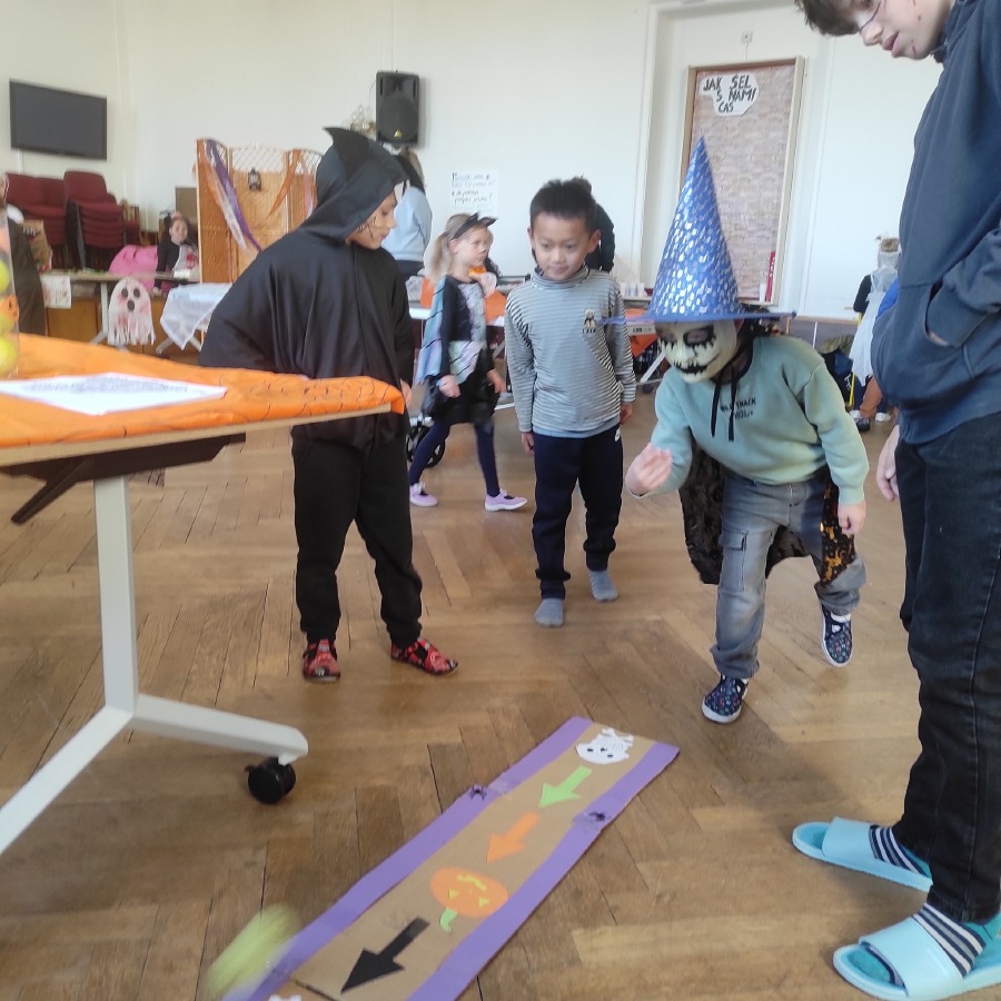 Poslední říjnový den jsme si opravdu užili! Pracovali v minicentrech, kde si děti vyzkoušely různé tvořivé i zábavné úkoly s halloweenskou tematikou – vyráběly duchy, malovaly dýně, luštily strašidelné úkoly a trénovaly spolupráci i trpělivost. Celou školu provázela příjemně napínavá atmosféra.