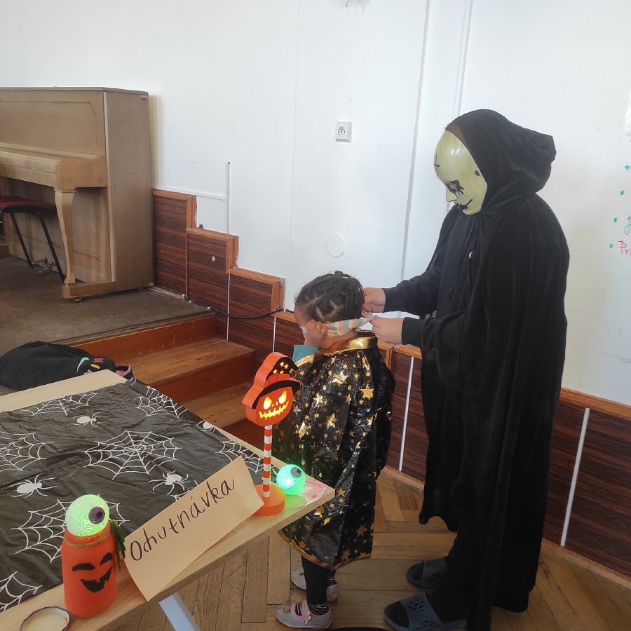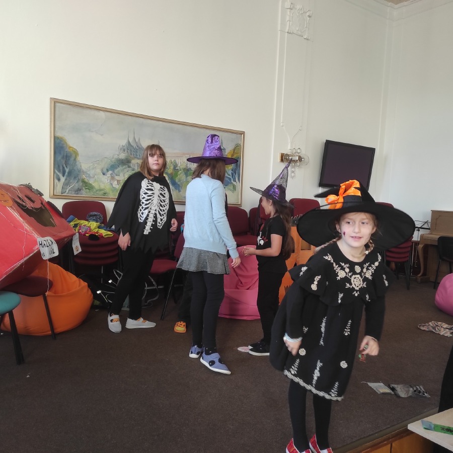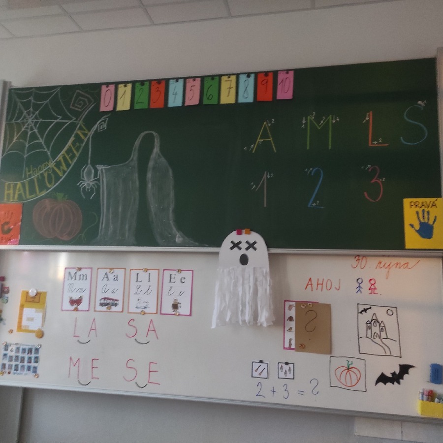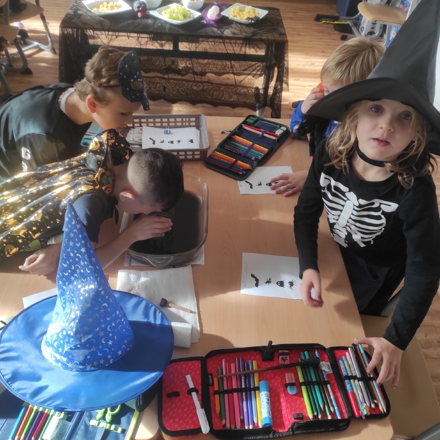 Poslední říjnový den jsme si opravdu užili! Pracovali v minicentrech, kde si děti vyzkoušely různé tvořivé i zábavné úkoly s halloweenskou tematikou – vyráběly duchy, malovaly dýně, luštily strašidelné úkoly a trénovaly spolupráci i trpělivost. Celou školu provázela příjemně napínavá atmosféra.