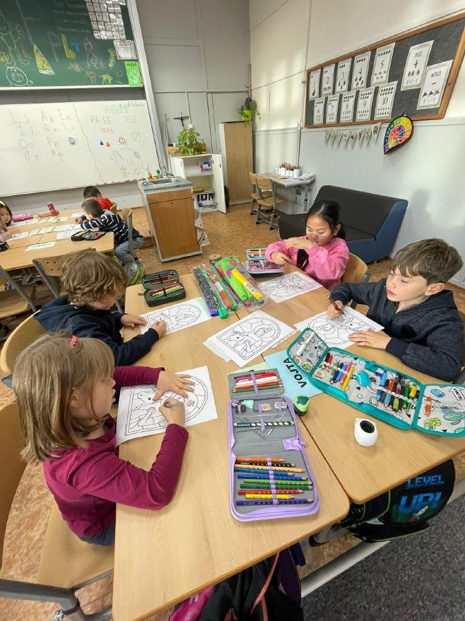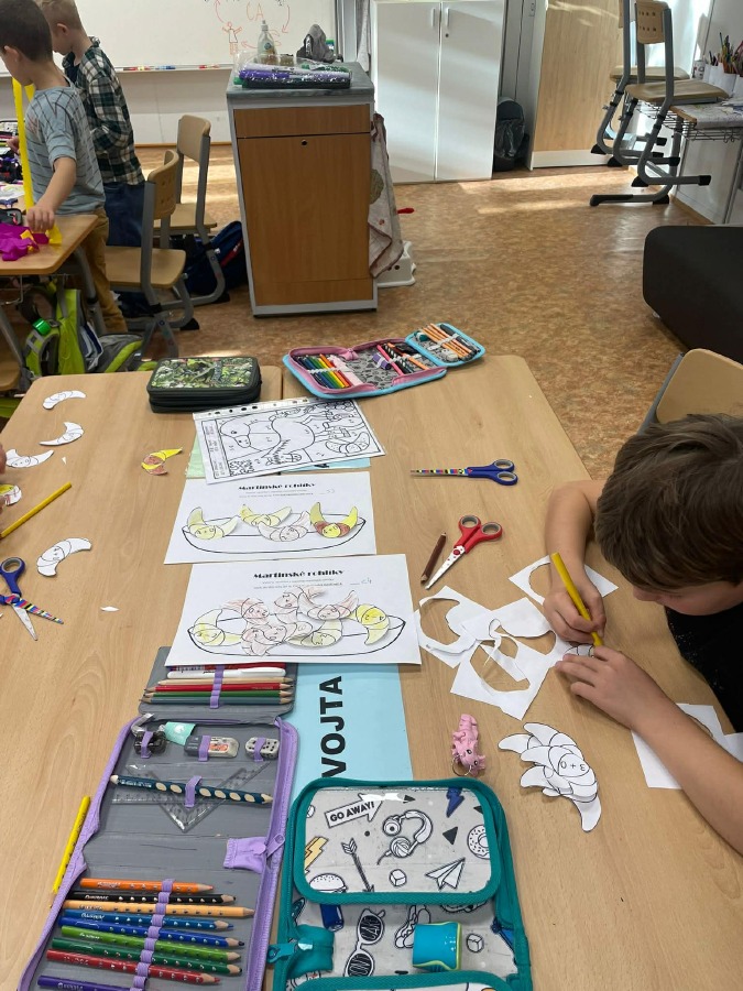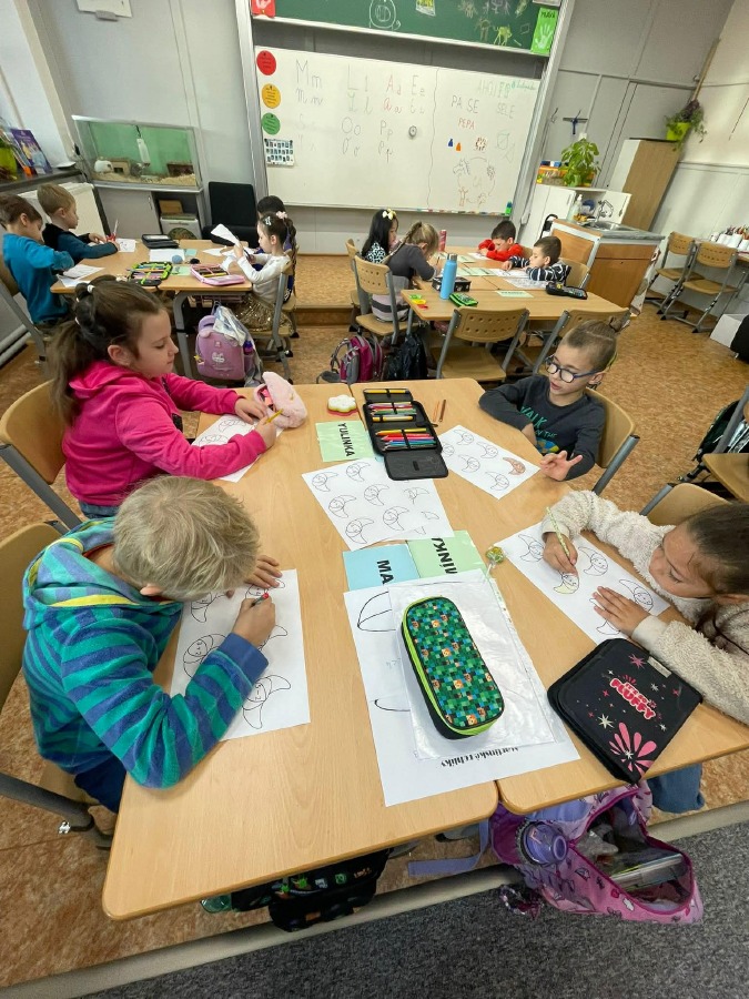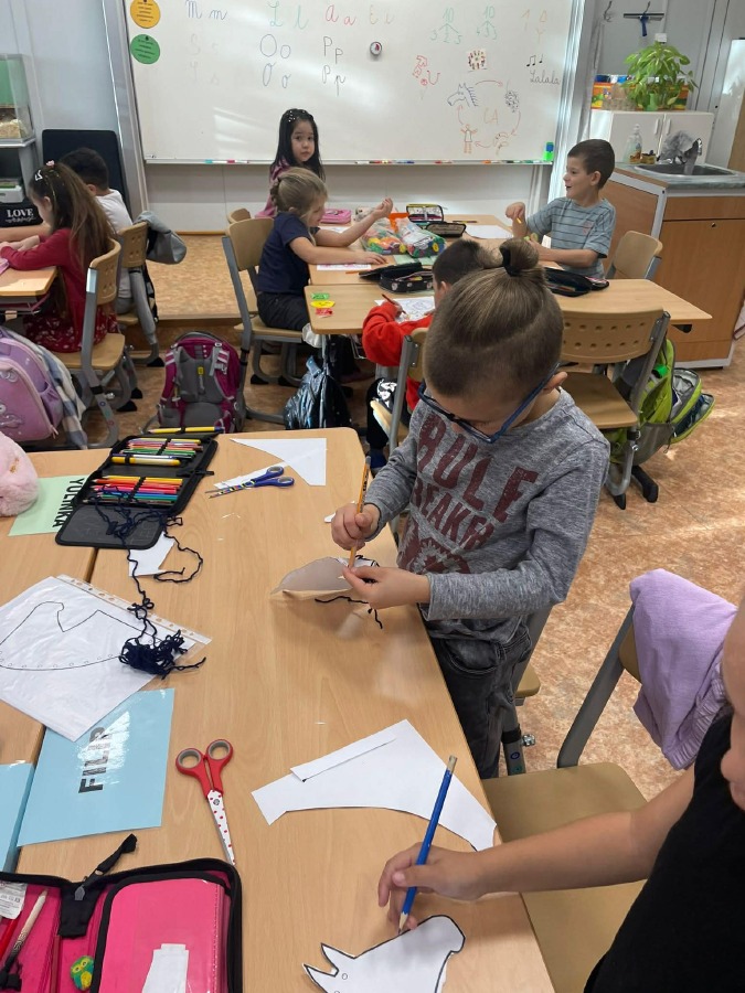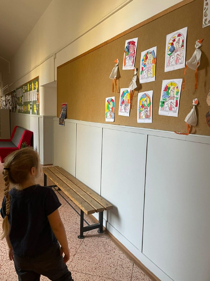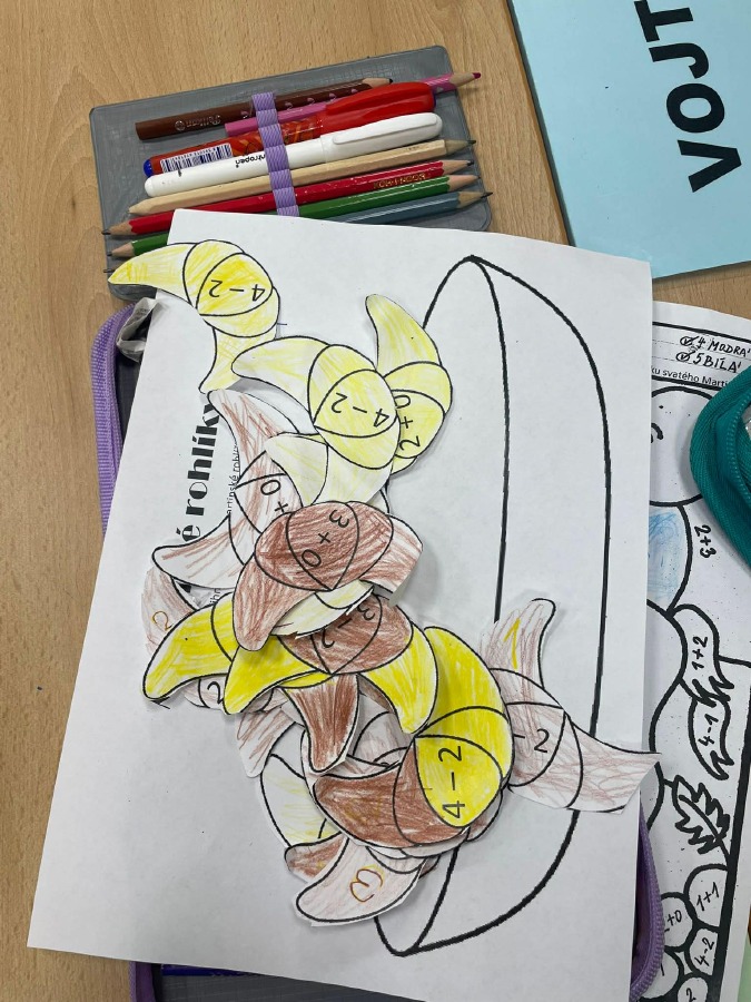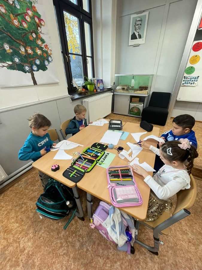 Druhá centra aktivit jsme tentokrát věnovali sv. Martinovi. V českém jazyce jsme trénovali opis písmenek a hledání správných tvarů písmen. V matematice jsme počítali a určovali, zda je výsledek větší než 3 nebo menší než 4. V Ateliéru jsme tvořili výtvory podle předlohy například vytráž a v Dovednostech jsme si vyrobili koně svatého Martina. ![]()
