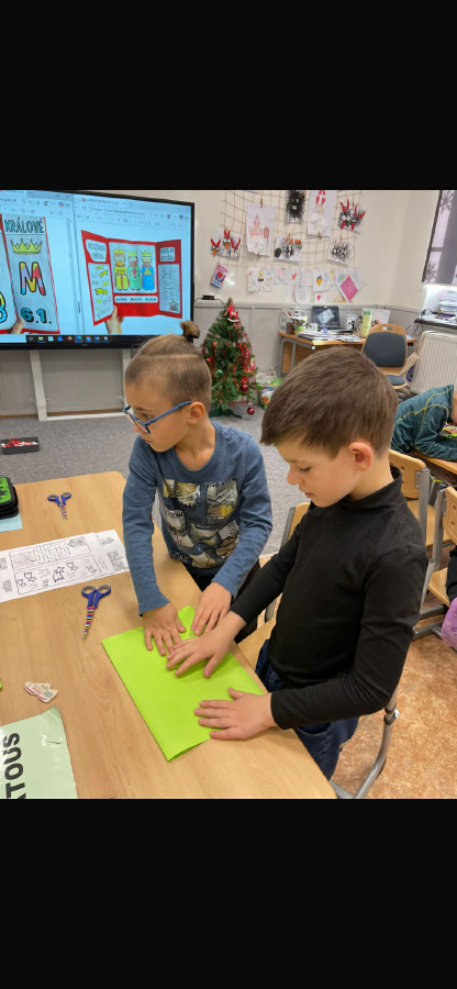 Porpvé jsme tvořili lapbook. Nejprve jsme se museli seznámit s tím, co to vůbec je. Docela rychle jsme pochopili, co to je a jak ho tvořit. Zbývalo ještě téma, které jsme se dozvěděli díky krátkému videu. Téma bylo Tři králové. Rozdělili jsem se do dvojic, domluvili jsme se, jak budeme pracovat, kdo co bude dělat. Dostali jsme pracovní listy, čtvrtku a mohli jsme začít. Byli jsme do práce tak ponoření, že jsme ji nestihli první den. Když jsme další den přišli do školy, ještě ani nezvonilo a už jsme si brali naše lapbooky, abychom práci dokončili. ![]()
