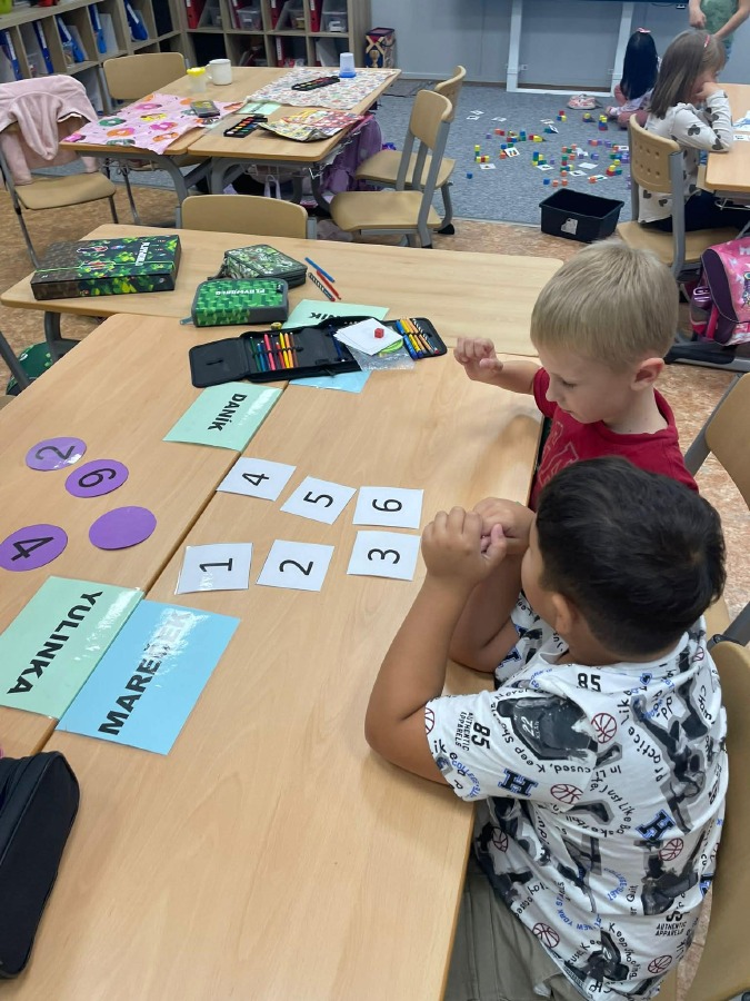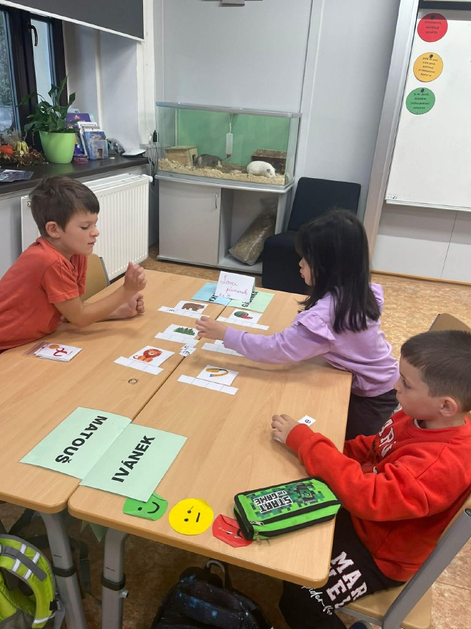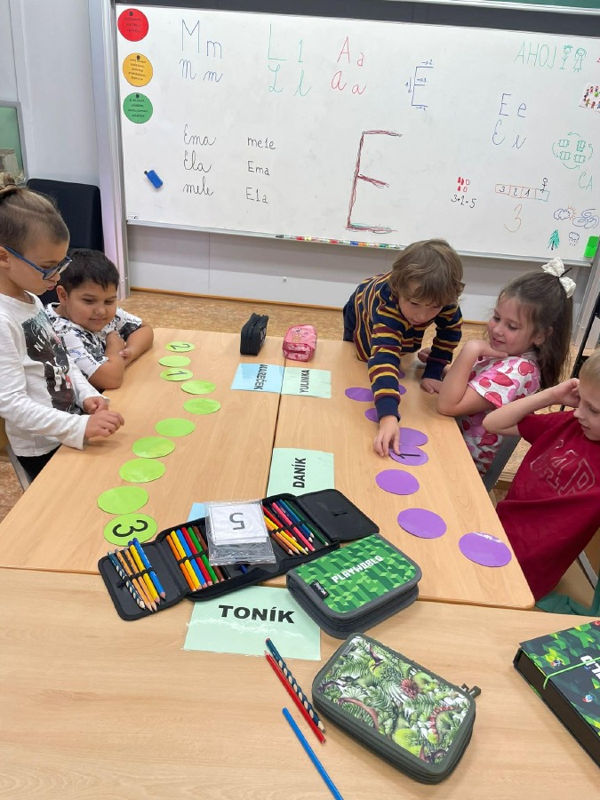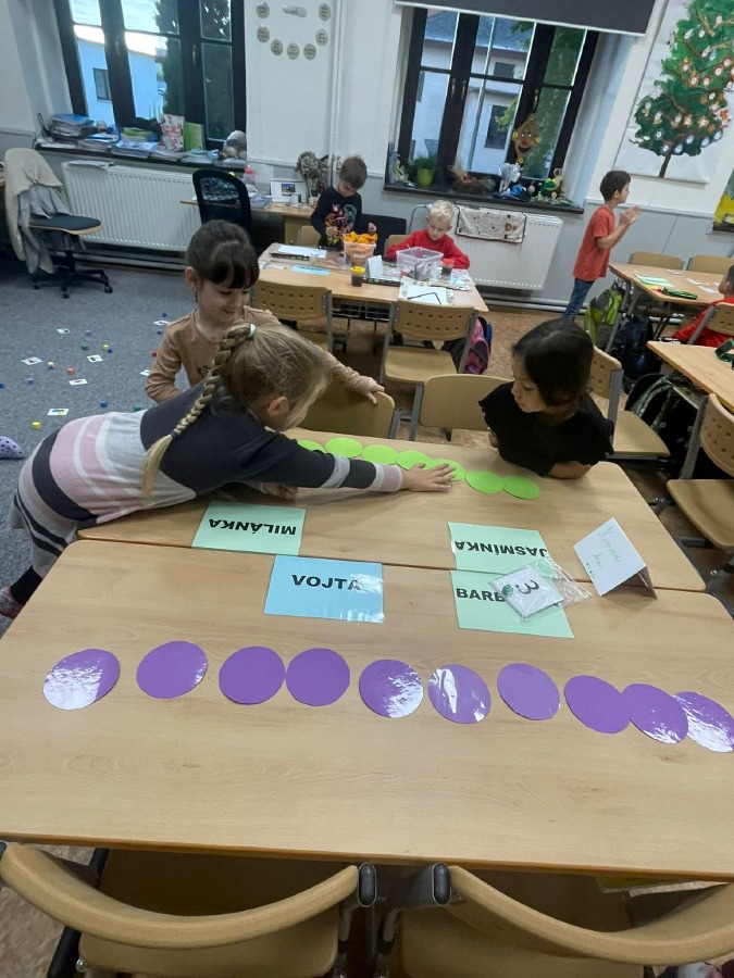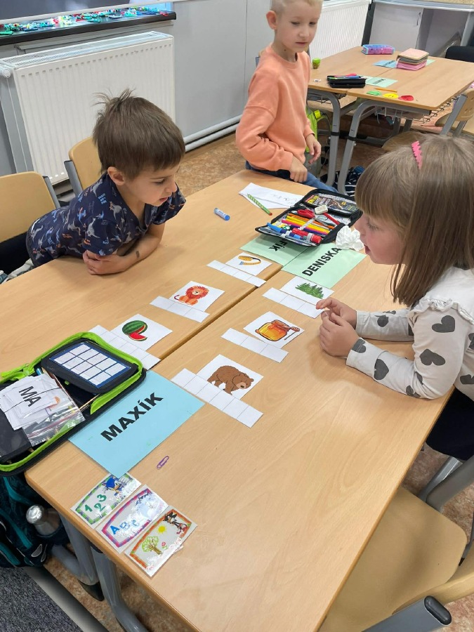 Máme za sebou první týdenní centra aktivit na písmeno E. V centru Lovci písmenek jsme hledali písmeno E a e a vkládali ho do slov + jsme trénovali slabiky. V centru Ateliér jsme tvořili písmeno, které už umíme, a rozvíjeli svou kreativitu. V centru Stavitelé jsme stavěli z krychliček podle předlohy a zkoušeli prostorovou představivost. A v centru Kimova hra jsme si hráli s čísly a trénovali paměť.