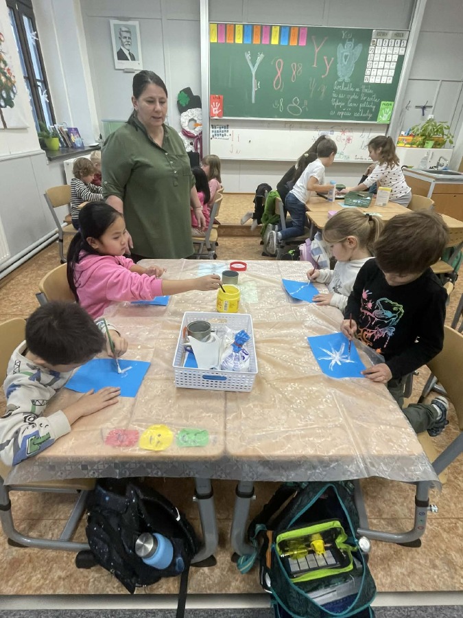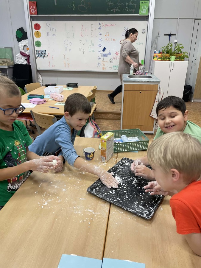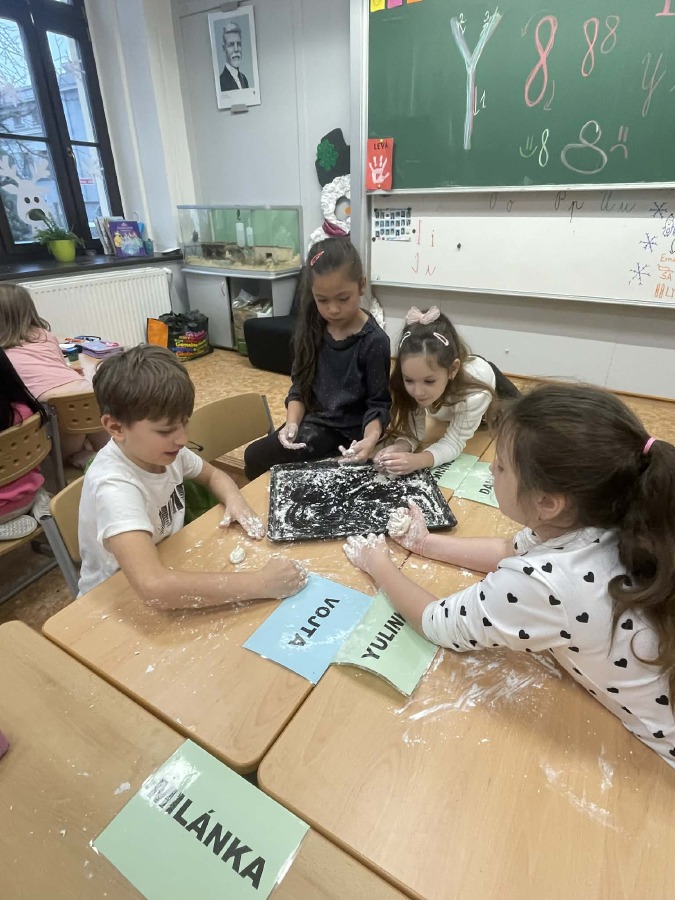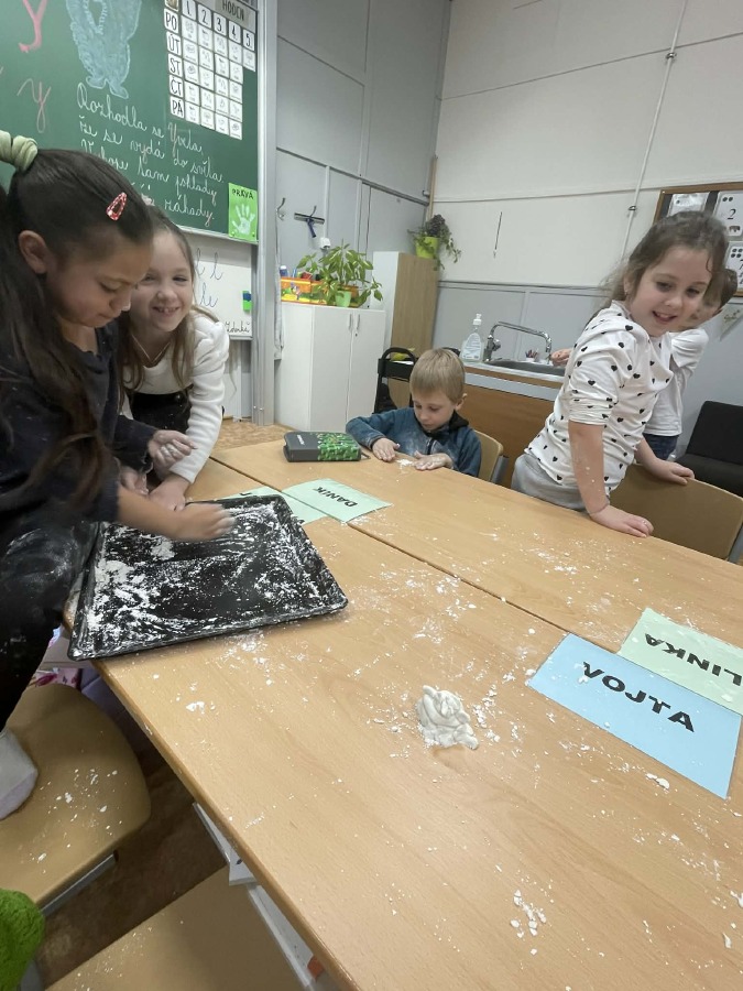 První týden v prosinci jsme měli další centra aktivit na téma Zima. V českém jazyce jsme skládali ze slov věty a trénovali čtení, přiřazovali jsme zimní věci k počátečním písmenům. V matematice jsme museli spočítat cestu eskymáka k iglu, zahráli kimovu hru se zimním oblečením a trénovali počty na Ipadech. V ateliéru jsem kouzlili se solí a provázkem. A v objevech každé centrum tvořilo sníh z jiných surovin ( kuk. škrob, jedlá soda, pěna na holení, voda, krém). Tato centra byla plná nových věcí a zkušeností. Moc jsme si centra užili, to můžete vidět na fotkách. ![]()