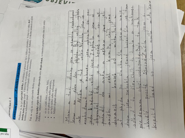Dále je čekala Afrika. Zde se staly cestovateli a měly sepsat deníkový záznam (nebo dopis domů) z poznávací cestovatelské cesty. Musely nejdříve samozřejmě nastudovat přírodní památky v Africe.
