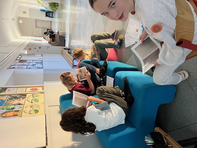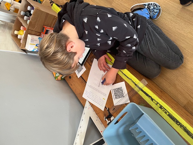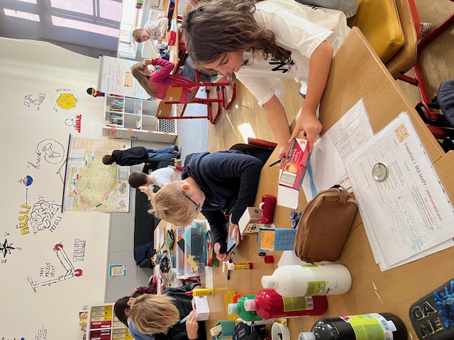 V dalším centru je čekalo čtení. Postupnými úkoly se seznámily se známou knihou Město Ember, v které je děj knihy v podstatě postavený na hledání cesty a navigaci. Děti si zakreslovaly samy mapu k textu z knihy nebo naopak popisovaly cestu z mapy. Vyzkoušely si více možností. Opět nelehký úkol. Snad je kniha motivovala si jí přečíst. Mohou si jí půjčit v naší třídní knihovně.
