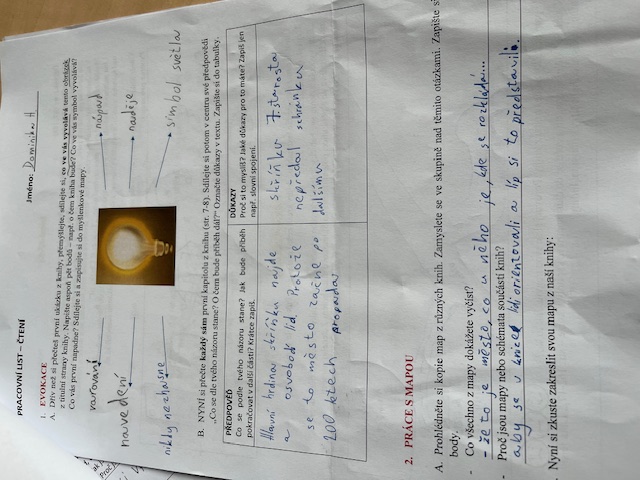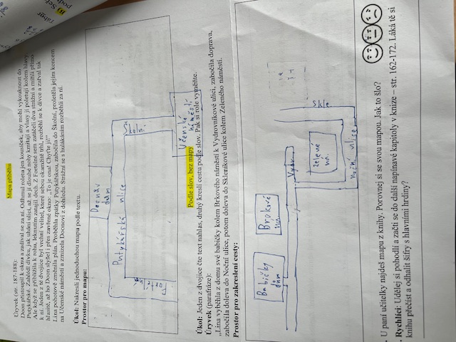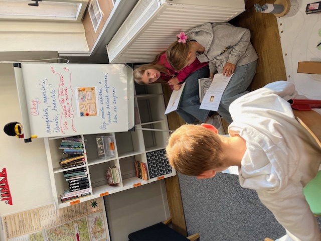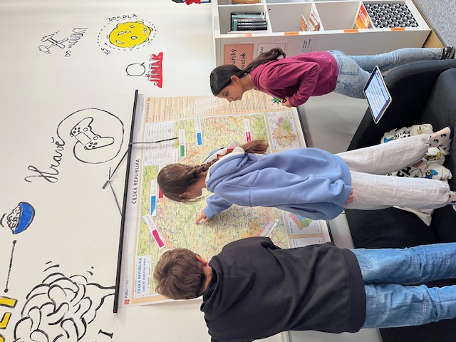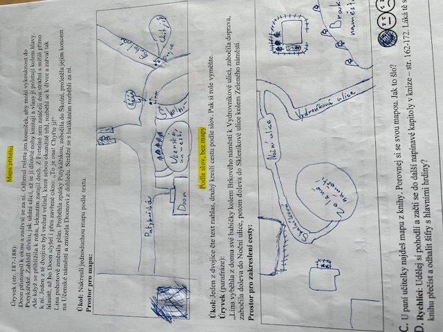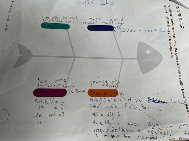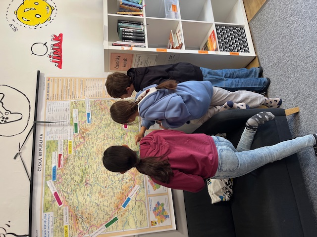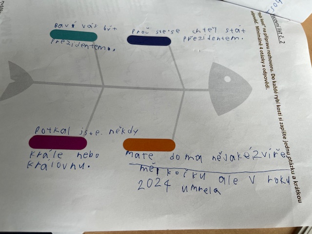 Český jazyk měl dvě centra. V jednom centru je mapa zavedla až na Pražský hrad. Děti měly za úkol si zjistit základní informace o našem prezidentovi, zapsat do myšlenkové mapy. Představit si, že pan prezident přijede k nám do školy a předvést s ním rozhovor. Také velice náročný úkol, s kterým se velice statečně děti popraly